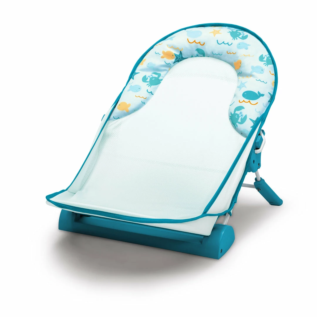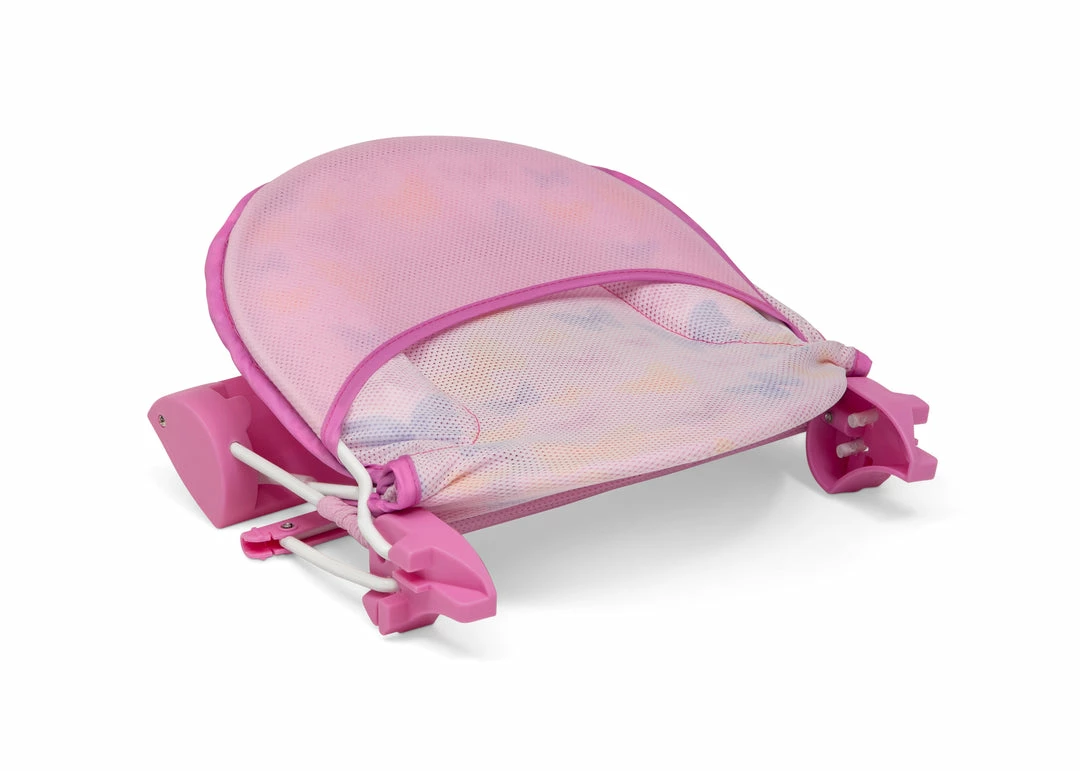 This Baby Bather by Delta Children provides a safe place to bathe your newborn. The bather’s soft mesh material is gentle on baby’s delicate skin and is easy to clean–the 2-poistion recline ensures your baby is in a comfortable position throughout bath time. Additional cushioning at the top provides needed head support. Use it in your sink or bath tub. The bather’s compact fold is convenient for storage or travel.