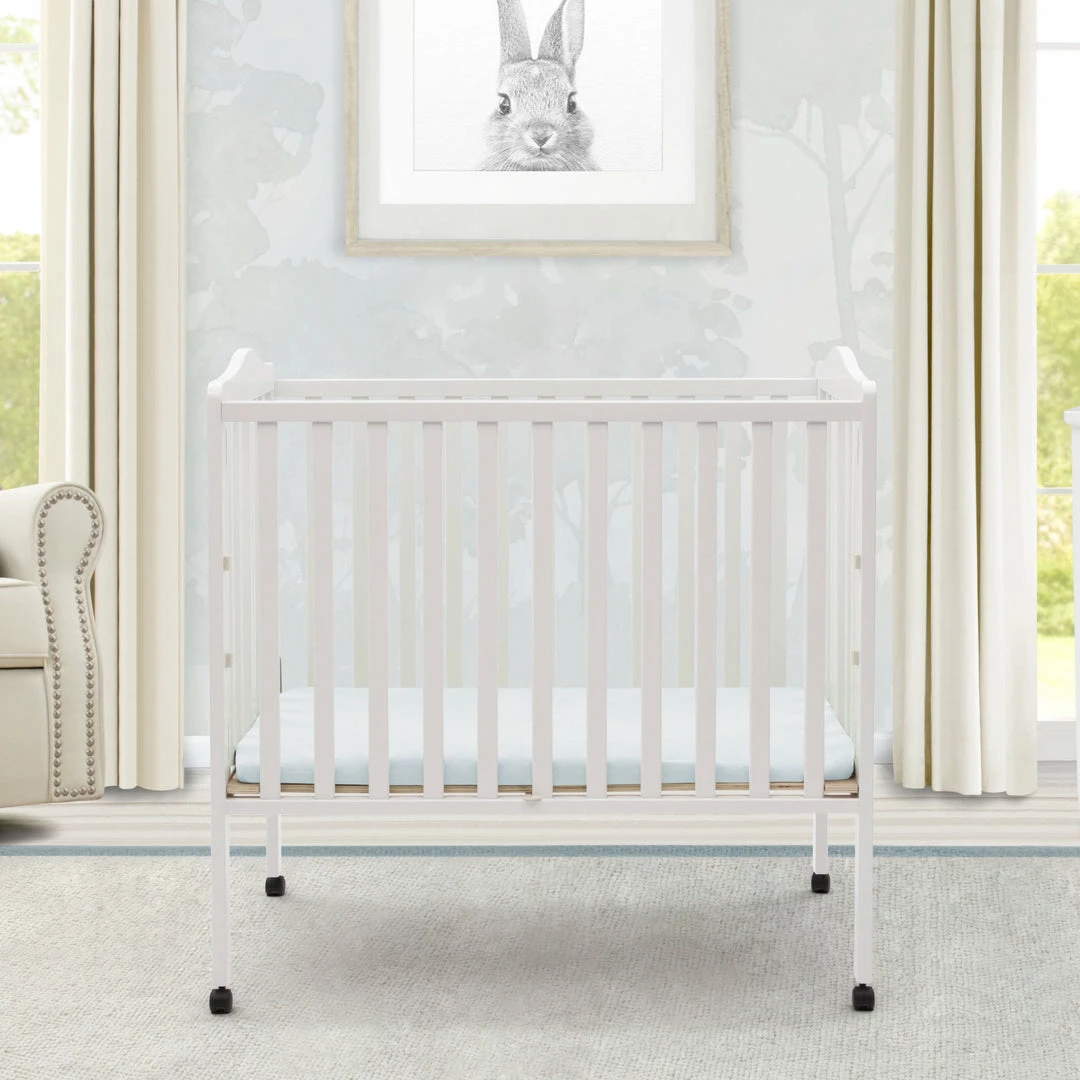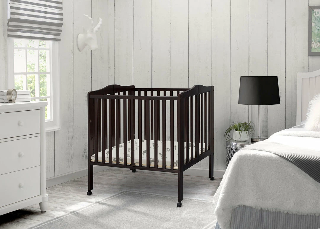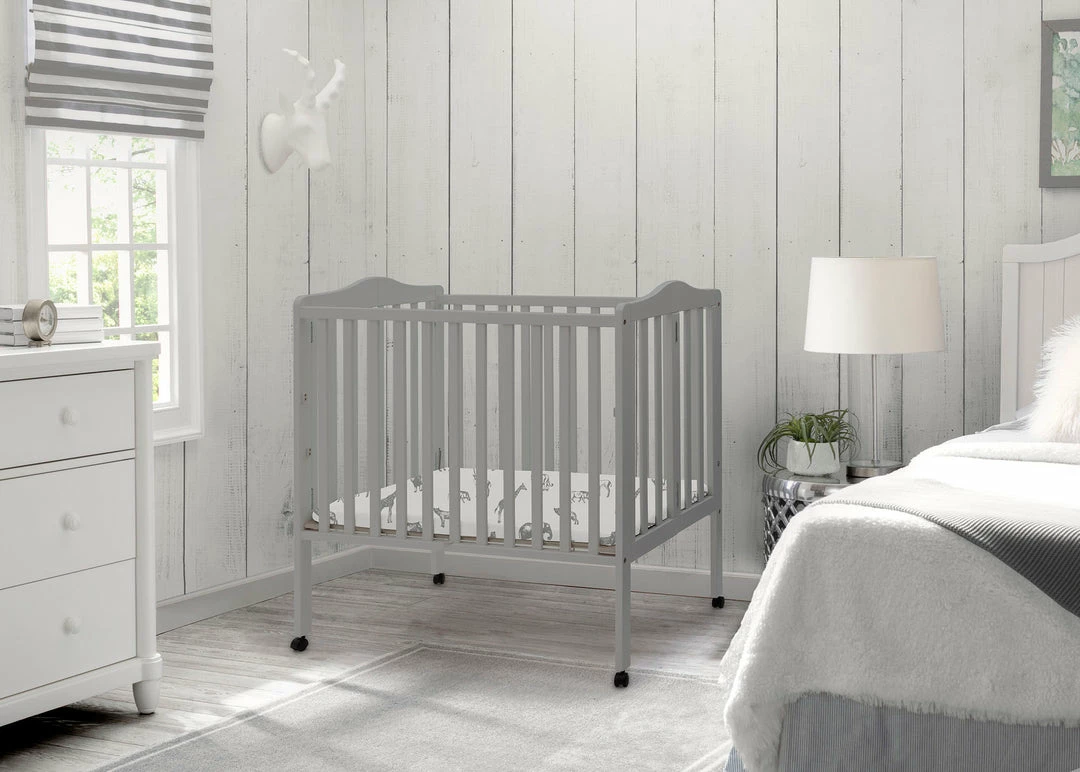 Great for small spaces or as a travel crib, the Portable Folding Crib with Mattress from Delta Children is well built and versatile. Its rolling casters allow for easy movement throughout the home, so you can keep your baby nearby at all times. And, when you’re on the go, it’s easier than ever to provide a safe and comfy sleep space for your little one. Made from durable wood, it easily folds up, making it perfect for transport. Designed for convenience, the Portable Folding Crib with Mattress from Delta Children includes everything needed for a good night’s sleep.