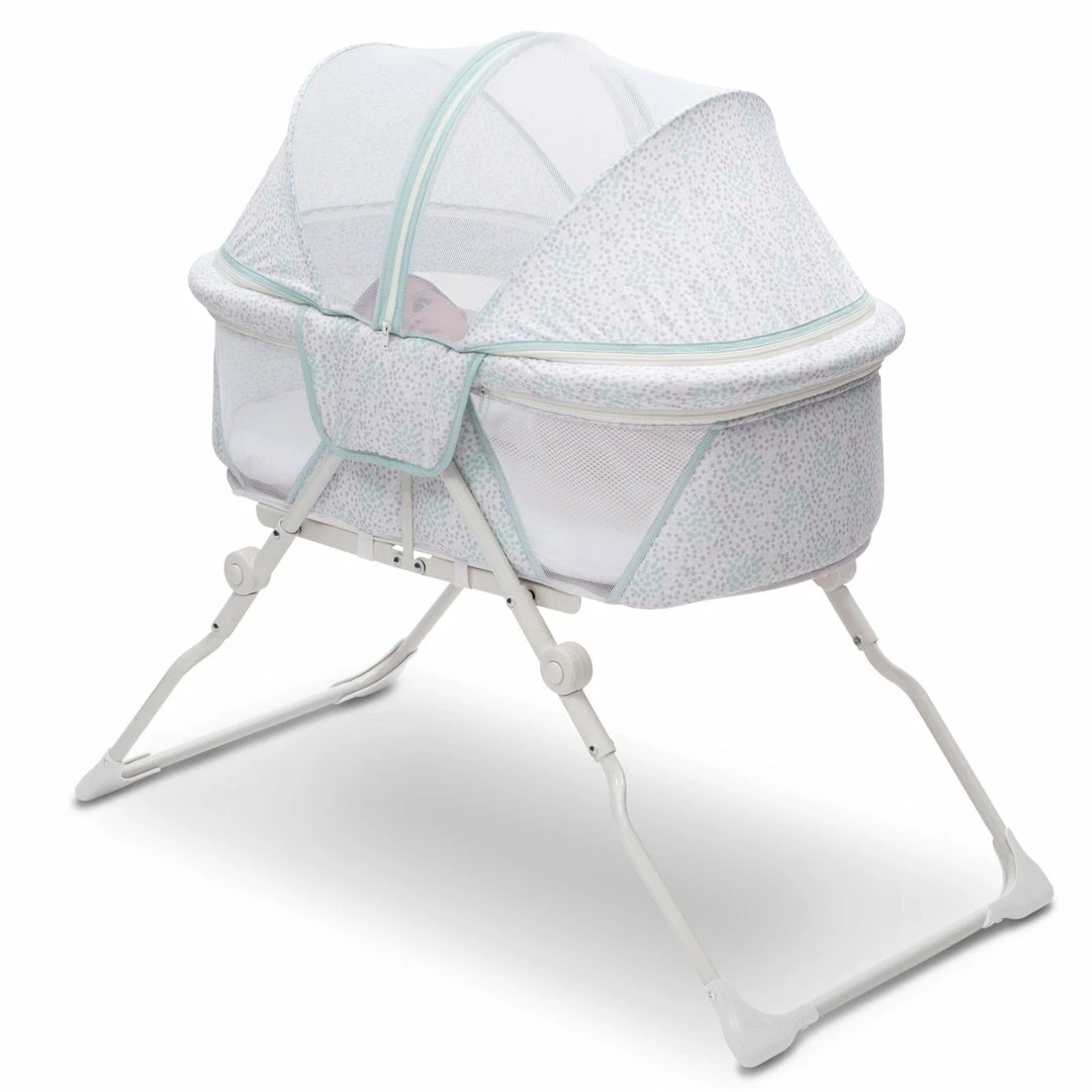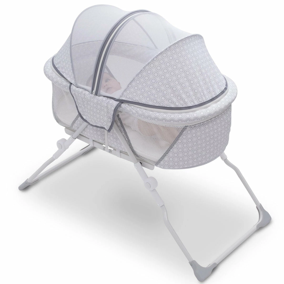 Whether you’re traveling with your baby or in need of a portable sleeper in your home, the EZ Fold Ultra Compact Travel Bassinet from Delta Children makes naptime and bedtime a breeze! The most compact full size bassinet available, this sleeper ensures your baby has the room they need to rest comfortably while the lightweight design means you can bring it anywhere and everywhere without trouble. Easy to setup and store away, the bassinet requires no assembly, and folds flat—the included travel bag makes every outing with Baby stress-free. Designed with mesh panels on the sides for airflow and increased visibility, the EZ Fold Ultra Compact Travel Bassinet provides the ideal environment for rest and relaxation. The bassinet’s removable canopy protects your little one from curious pets, mosquitos and other insects, and then effortlessly zips off when not needed.