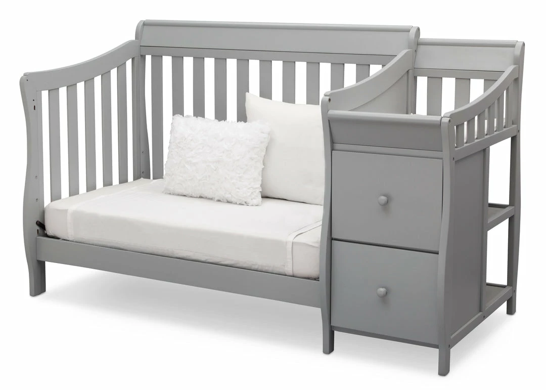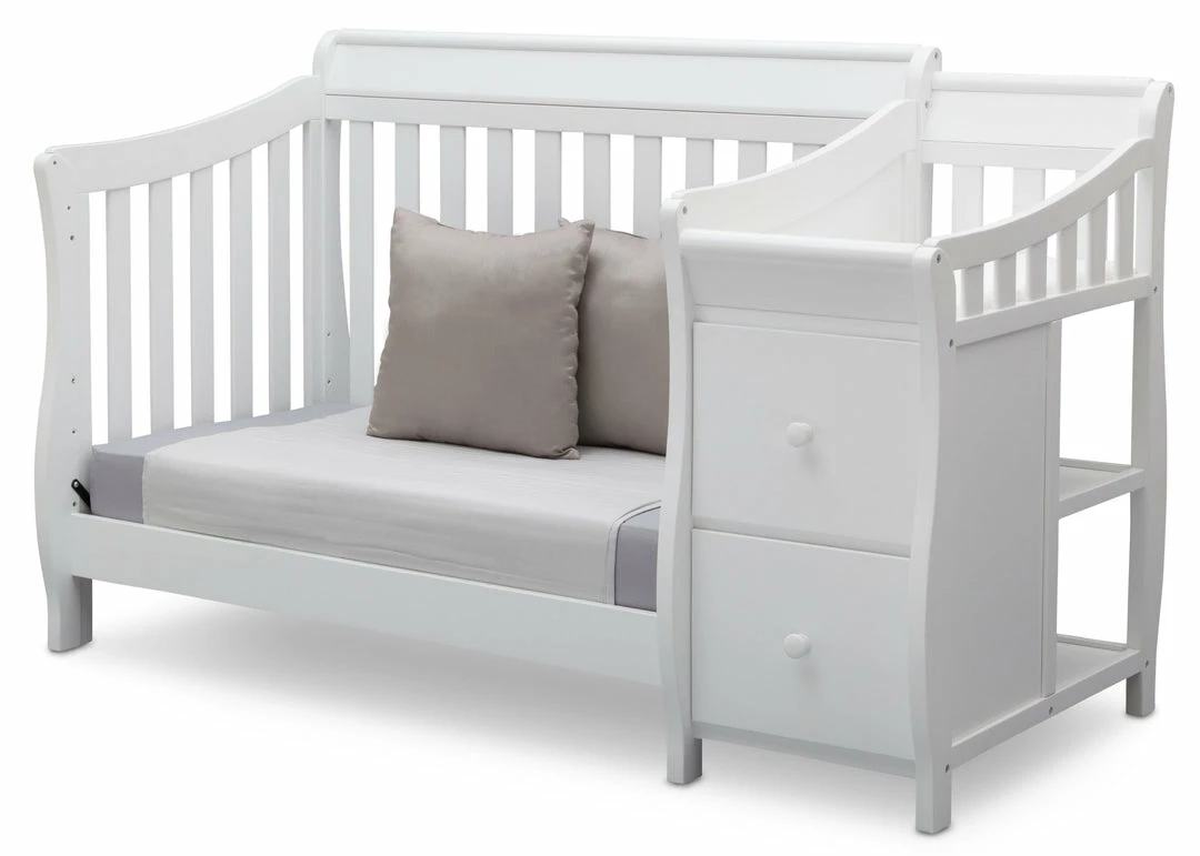 The ultimate mix of style and convenience, the Bentley S Crib N Changer will be the standout piece in any nursery. For versatility, a convertible 4-in-1 crib that easily adapts into a toddler bed, daybed and full size bed, is attached to a changing table that sits above two drawers and open shelving