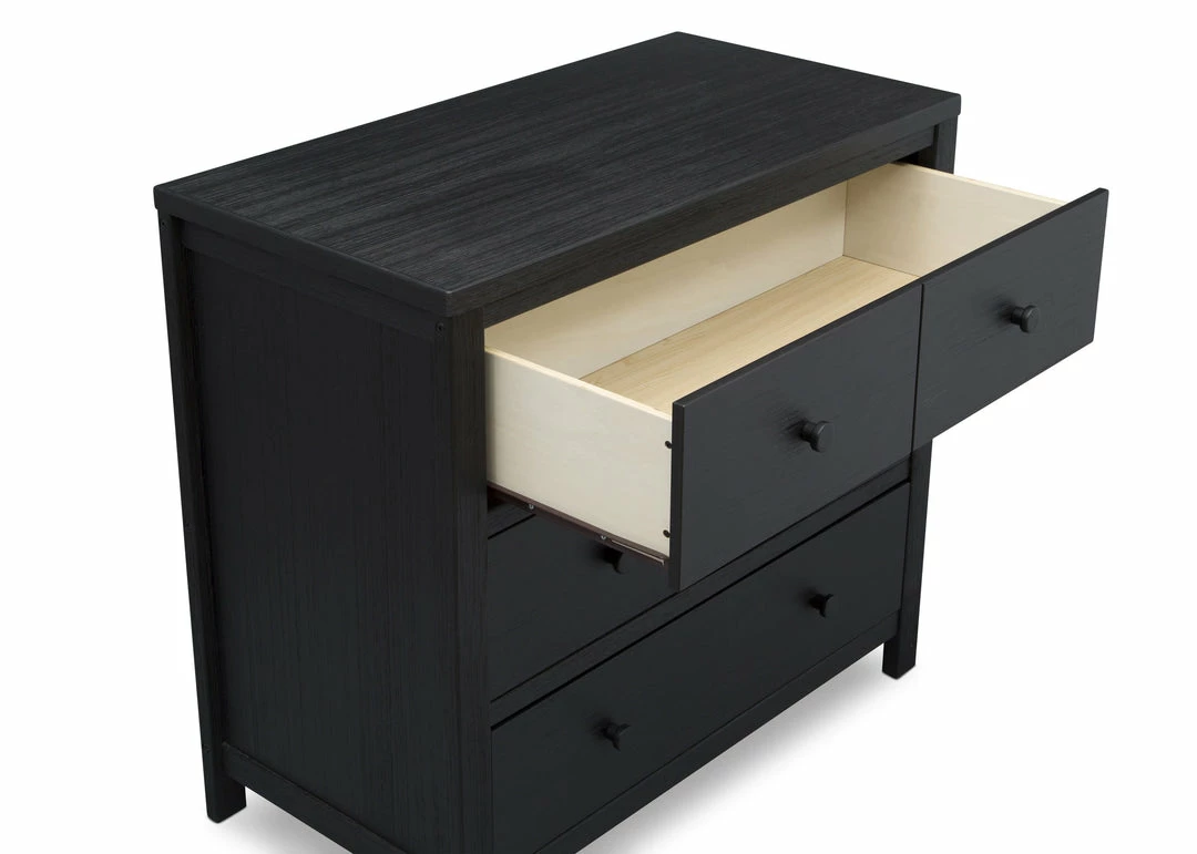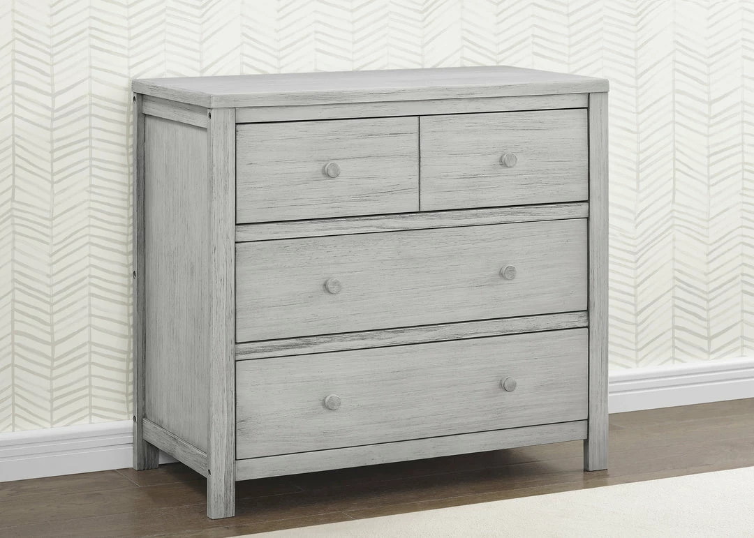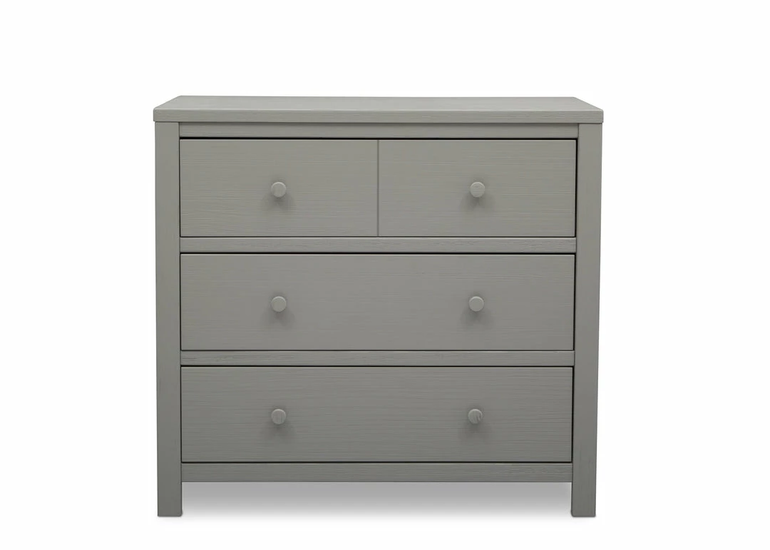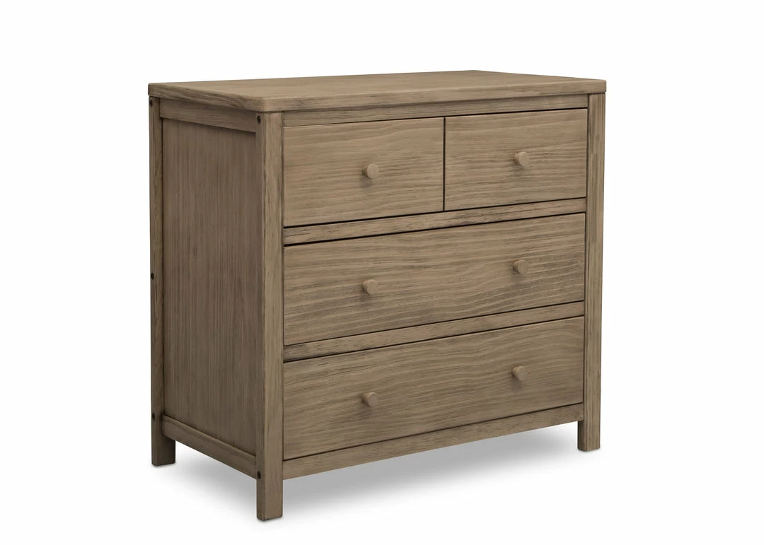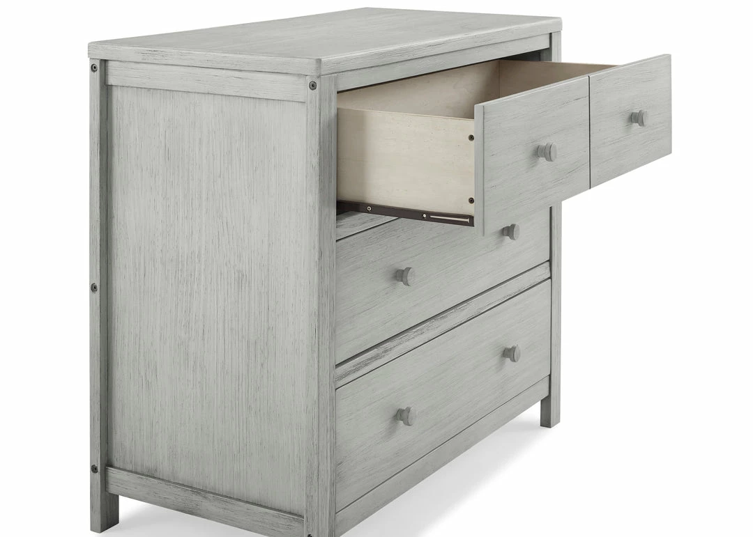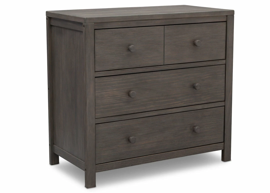 The rustic, extra-roomy Cambridge 3 Drawer Dresser from Delta Children features a unique textured finish that allows for the deep grain of the wood to show through. Built to last, it has a smooth metal glide system with safety stops that prevent drawers from pulling out, making it easy and safe for kids to manage on their own. Complete your nursery with the coordinating Cambridge 4-in-1 Convertible Crib.