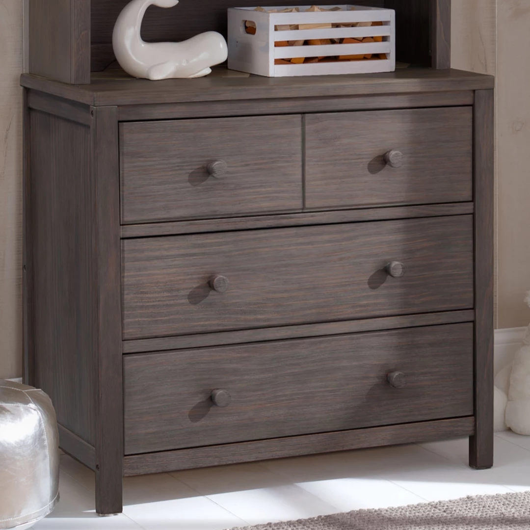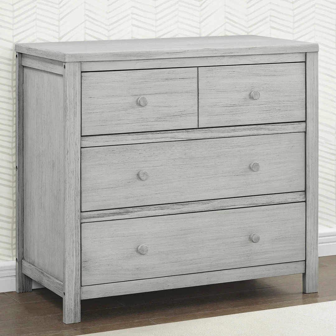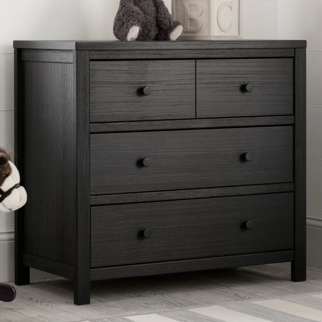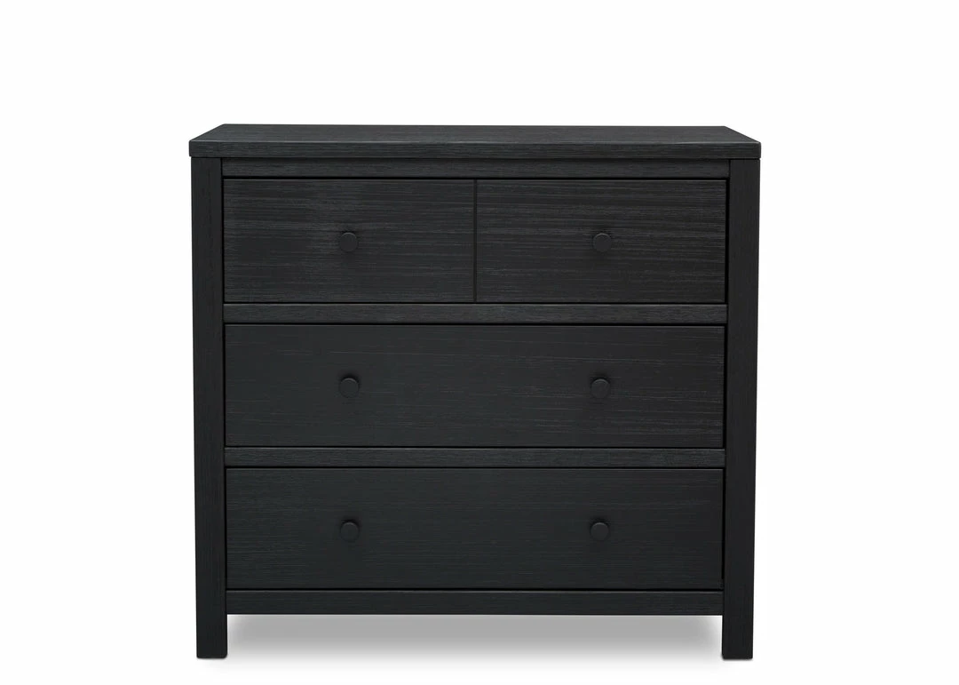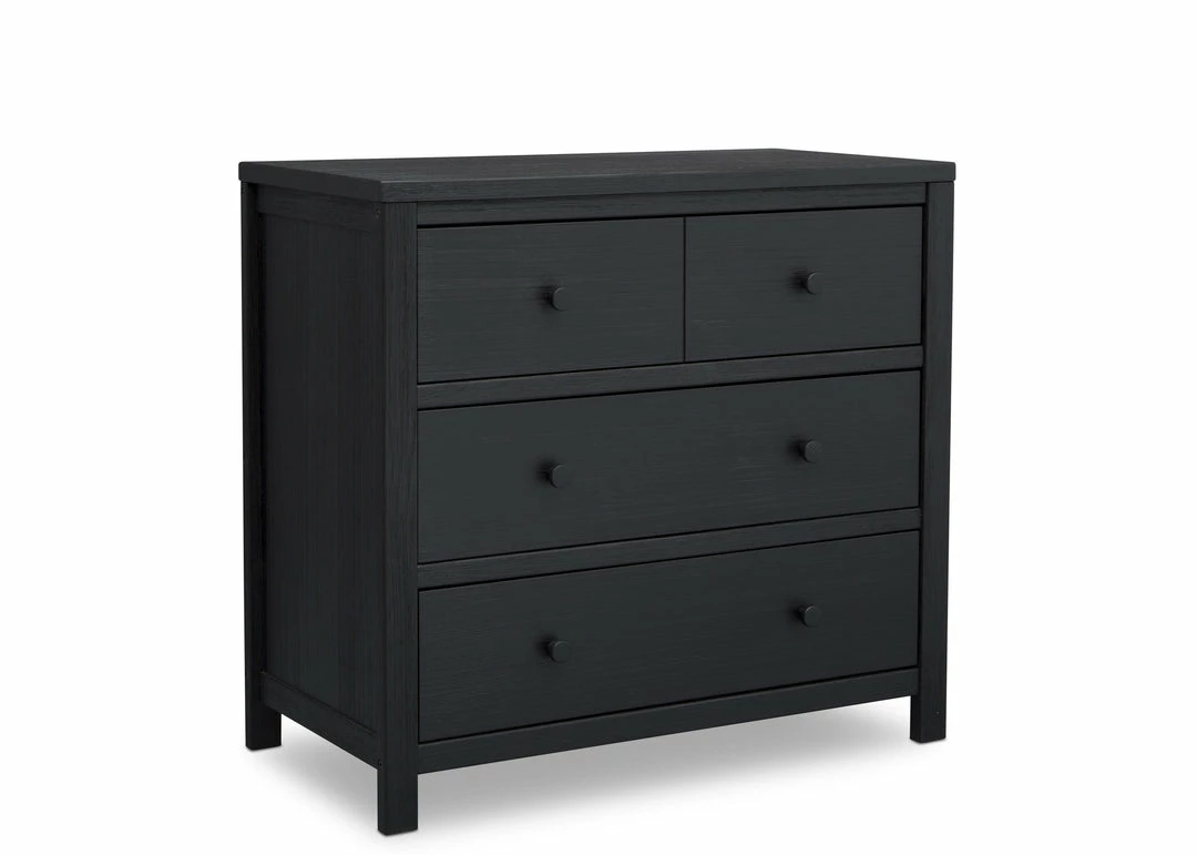 The rustic, extra-roomy Cambridge 3 Drawer Dresser from Delta Children features a unique textured finish that allows for the deep grain of the wood to show through. Built to last, it has a smooth metal glide system with safety stops that prevent drawers from pulling out, making it easy and safe for kids to manage on their own. Complete your nursery with the coordinating Cambridge 4-in-1 Convertible Crib.