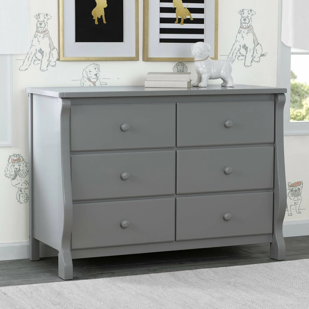 This Delta 6-Drawer Dresser is a gorgeous piece that combines simple, yet chic style with superb functionality. With a smooth surface top that can double as a bedside table, this versatile dresser has ample storage space that can serve from baby to adulthood. Spacious and made of sturdy construction, it comes with durable metal drawer glides for smooth drawer opening. Easy to assemble and easily fits within any decor. Complete your baby’s room with the Canton or Eclipse 4-in-1 Crib and Eclipse Changing Table.