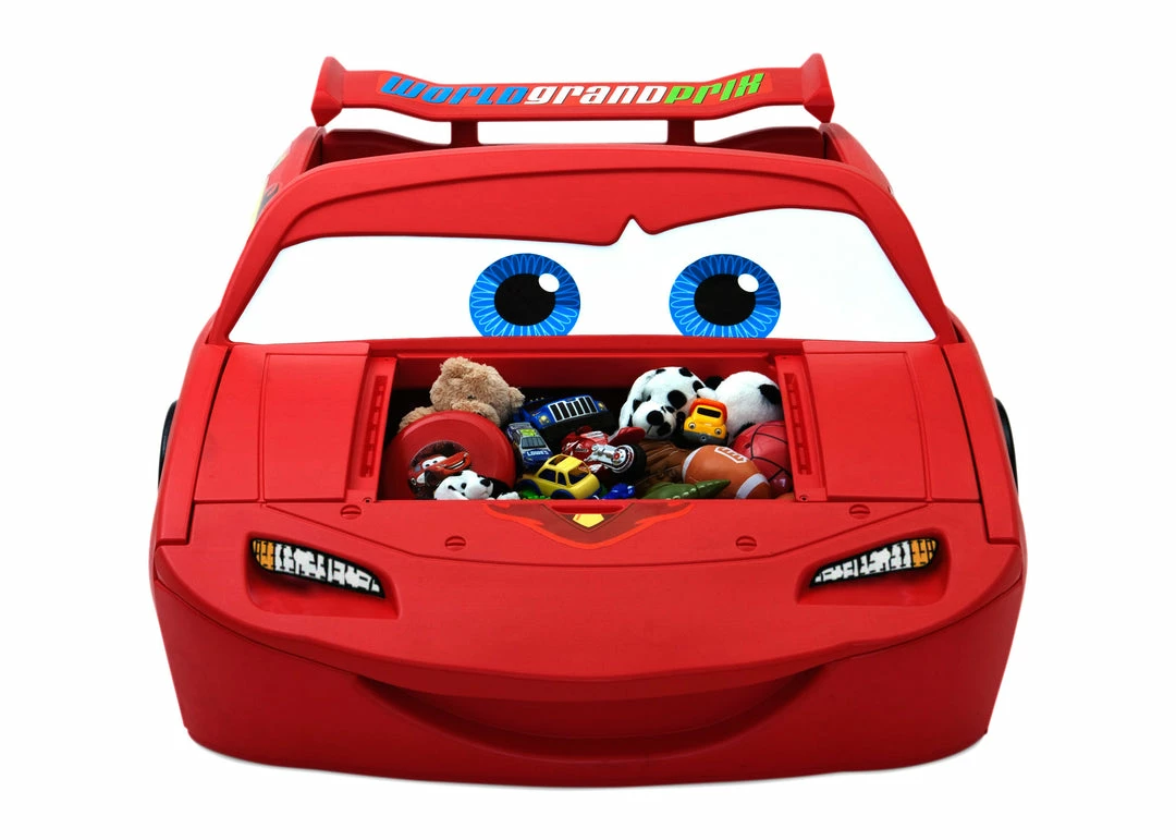 The Disney/Pixar Cars Toddler-to-Twin Bed with Lights and Toy Box from Delta Children is designed to resemble your little one’s favorite character, Lightning McQueen! Offering authentic racecar style with a steering wheel, spoiler and built-in storage space under the hood, it makes playtime and bedtime much more fun. Easily convertible, it goes from a toddler bed to a twin bed by switching out a crib mattress for a twin mattress. And once it’s converted to a twin bed, the built-in storage becomes an oversized toy box, providing plenty of space for toys, blankets or books. Pair the bed with any of Delta Children’s other Cars products for a race-winning look.