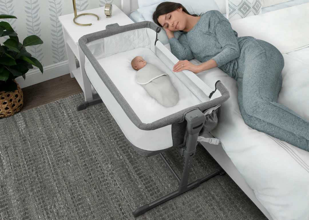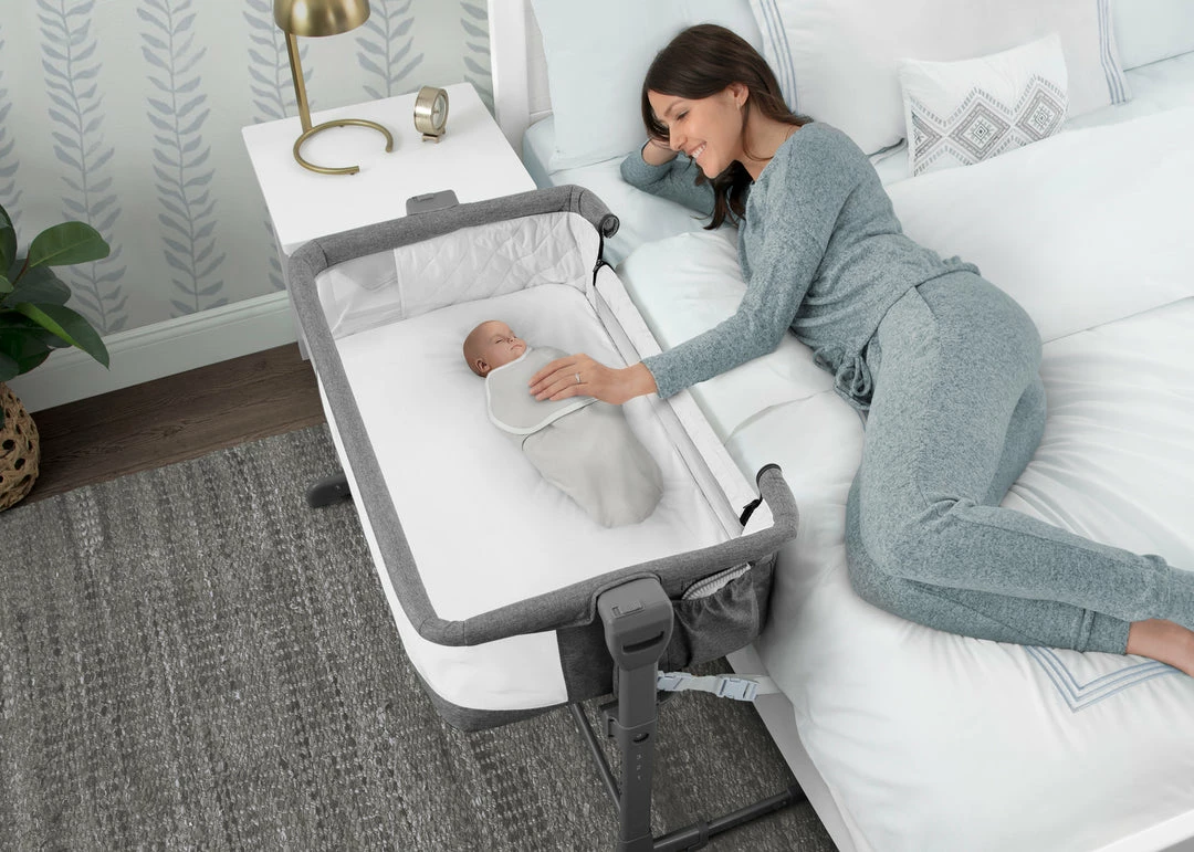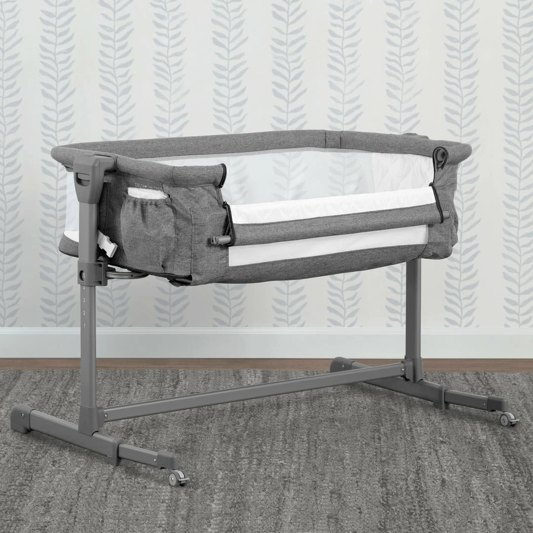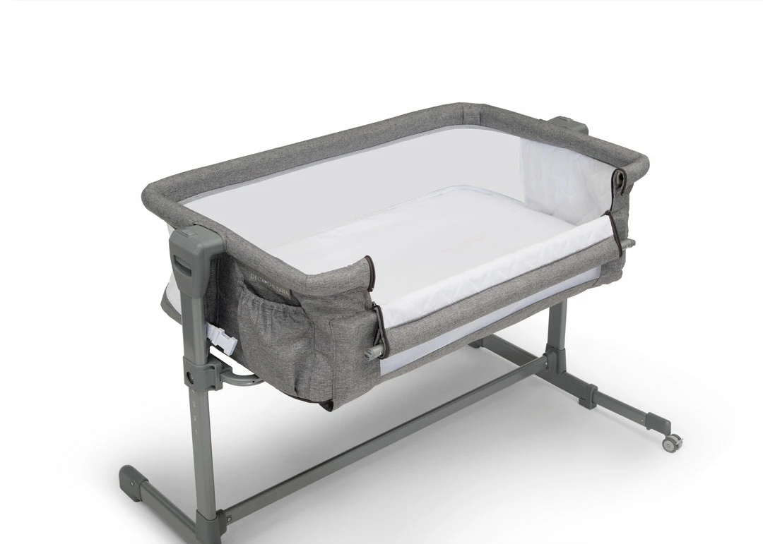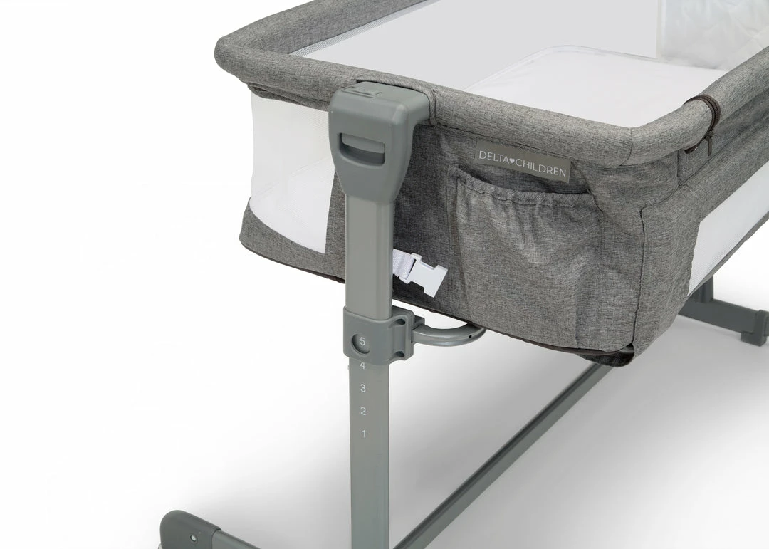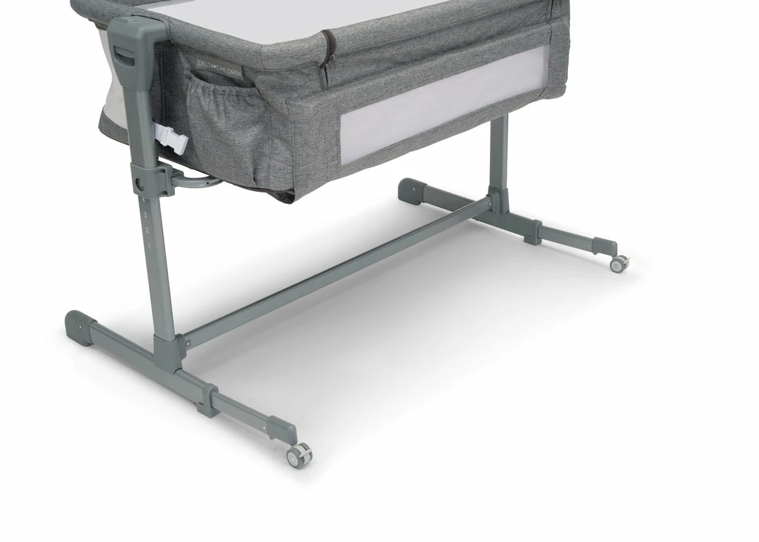 Give your baby a safe and spacious sleep space with the Close2Me Bedside Baby Bassinet by Delta Children. Larger than the average bassinet, it features a convertible design that allows it to be used as a standalone bassinet or as bedside sleeper. When converted into a bedside sleeper, this roomy bassinet provides the closeness and convenience of co-sleeping, while giving your baby their own protected space, plus it makes it easy to soothe and care for your baby, while still in bed. Simply unzip and unroll the side wall of the bassinet and use the included safety straps to securely attach the bassinet to your bed. The bassinet’s adjustable height ensures the perfect fit. Breathable mesh walls all around promote airflow and provide a clear view of your baby, so no matter how you use this bassinet, you’ll be able to safely keep an eye on your little one. This bassinet is recommended for babies 0-5 months. Max weight 30 lbs. Stop use at 5 months or once your infant begins to push up on their hands and knees, whichever comes first. Bassinet includes bedside safety straps, mattress pad and fitted sheet.