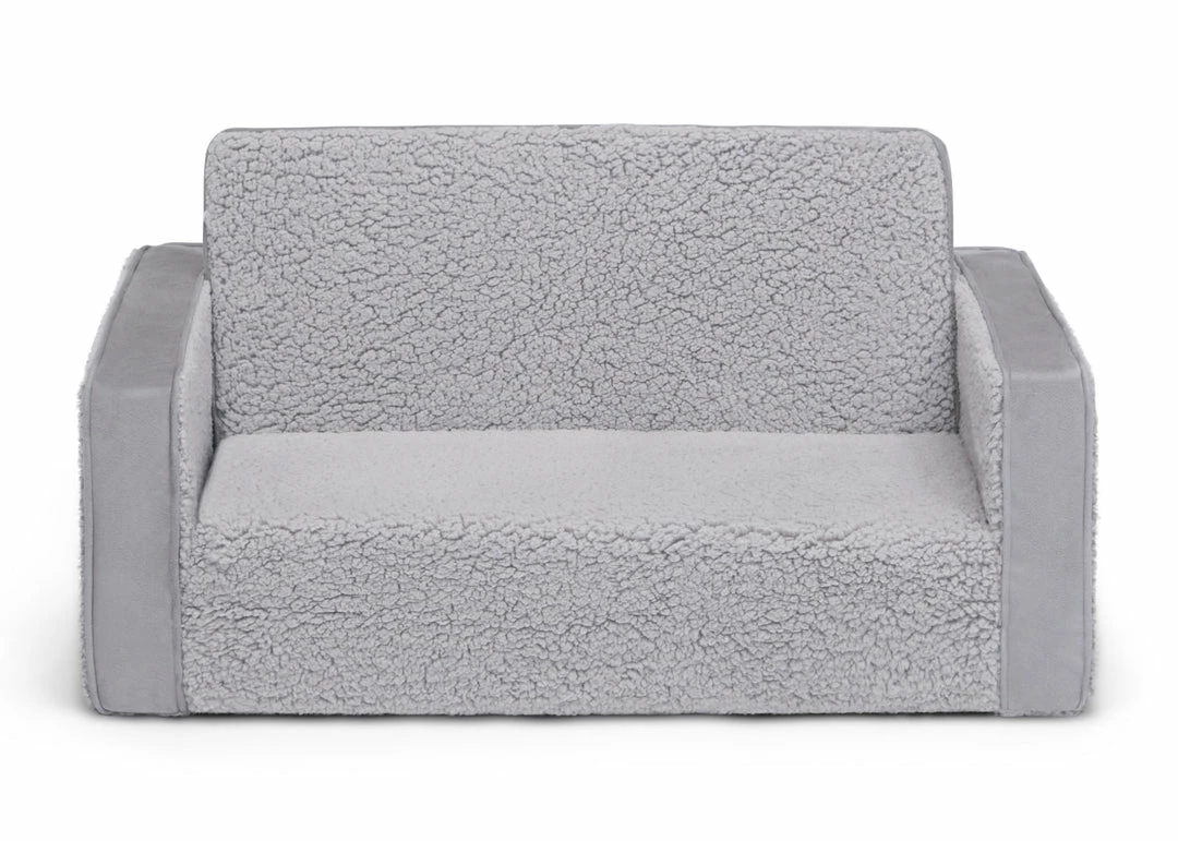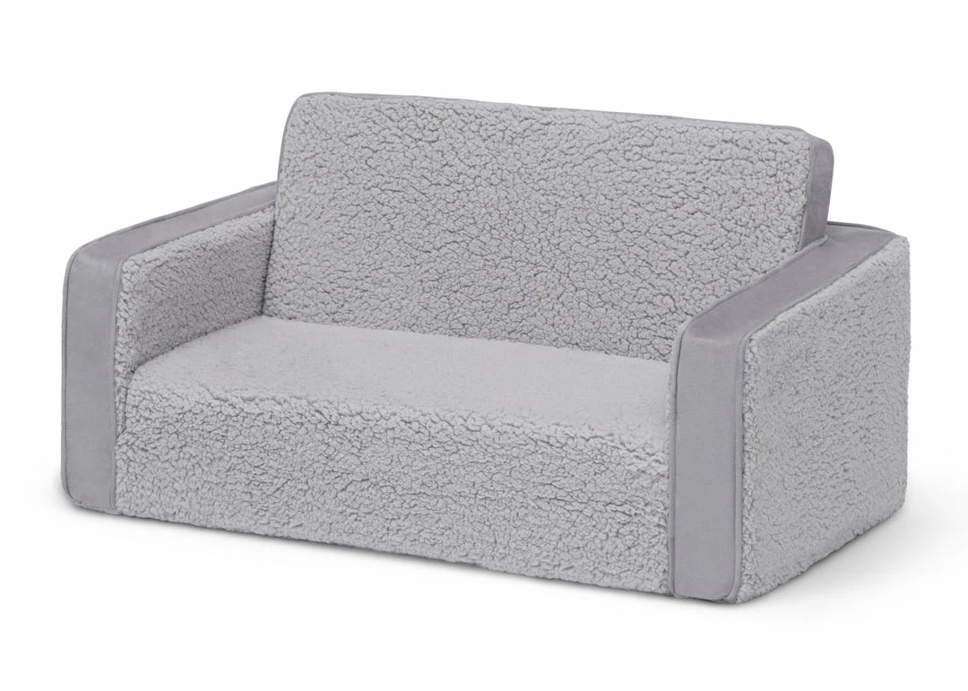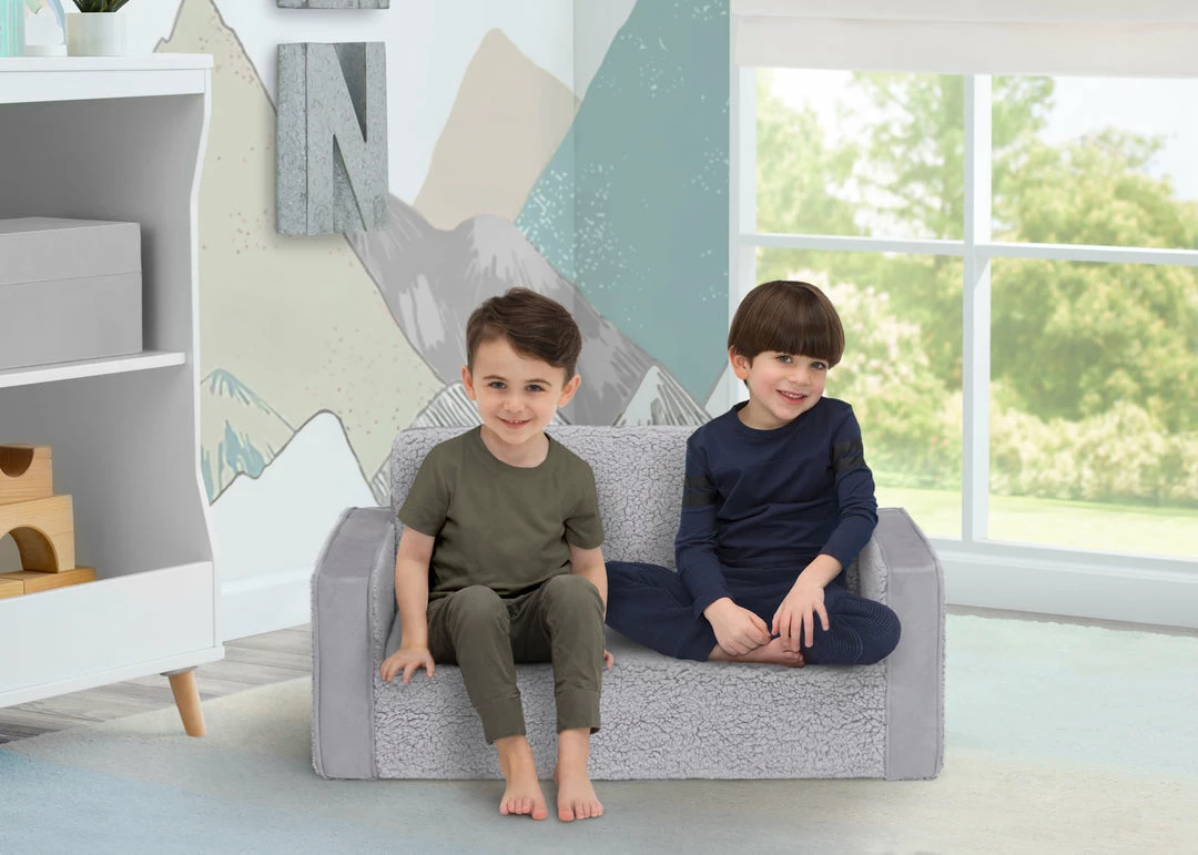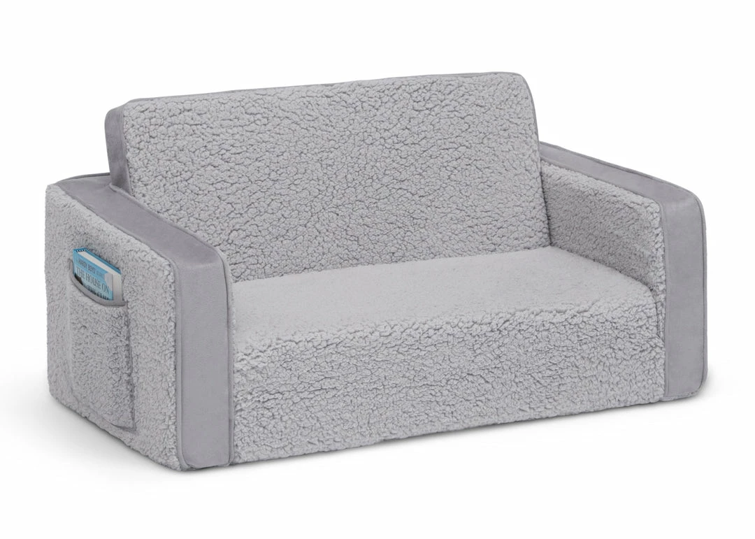 The Cozee Flip-Out Sherpa 2-in-1 Convertible Sofa to Lounger by Delta Children is a cozy couch by day, laid-back lounger by night. This convertible sofa easily flips open to reveal multiple ways for your child to relax–they’ll love to sit and read or watch their favorite movies on the sofa but when it’s time for a nap, this seat folds out into a comfy sleeper bed. Big enough to fit three small kids comfortably in sofa mode, it’s light enough to move around the house and is ideal for your children to share during playtime or sleepovers. The super-soft Sherpa and suede slipcover with easy-to-reach side pocket creates the ultimate retreat for your little one. The supportive foam construction will keep its shape and provides all-day comfort. Designed to ship in a super-small box, this lightweight foam kids’ sofa and lounger may take up to 24 hours to fully expand once unboxed. Machine-washable slipcover zips off for easy cleaning. Recommended for ages 18 months+.