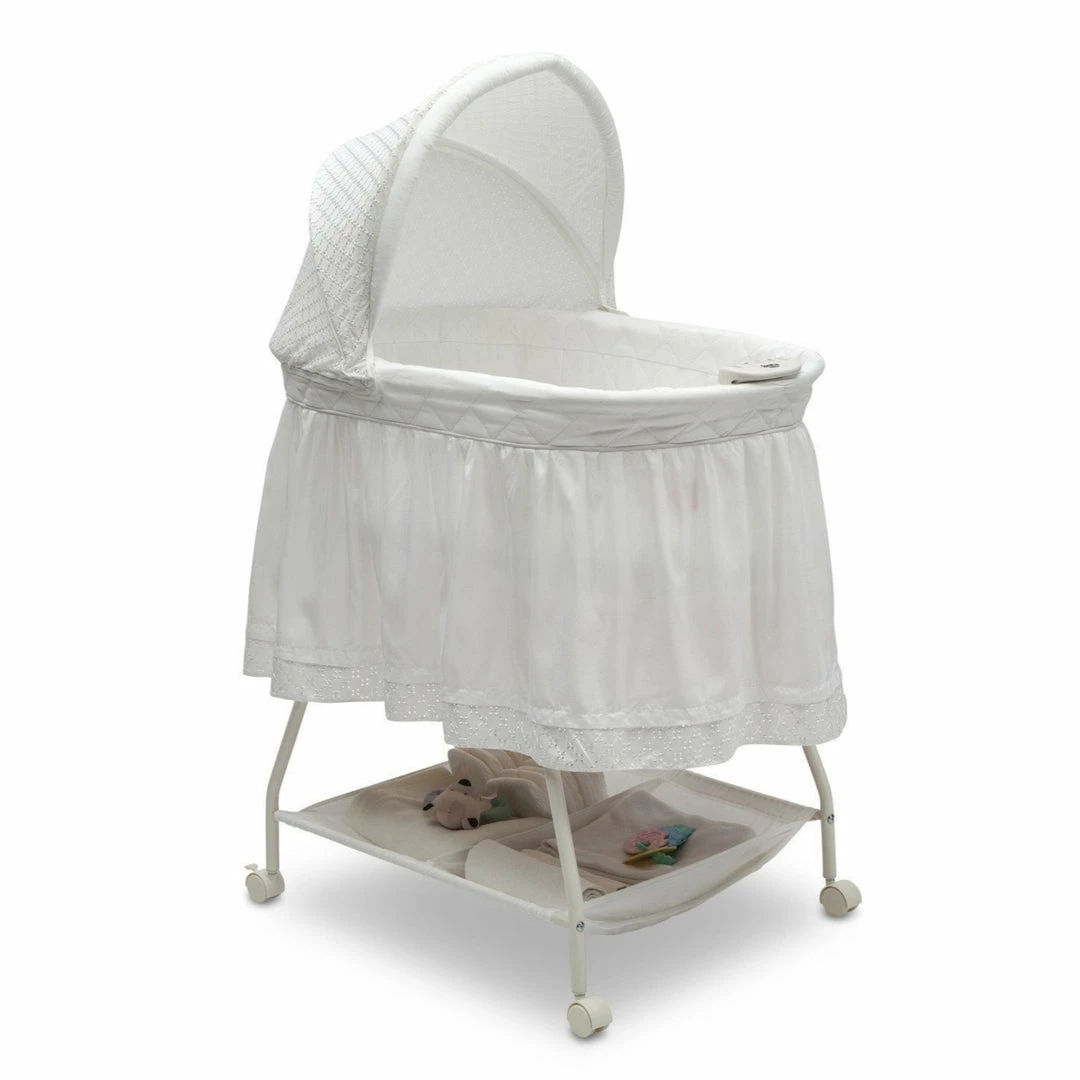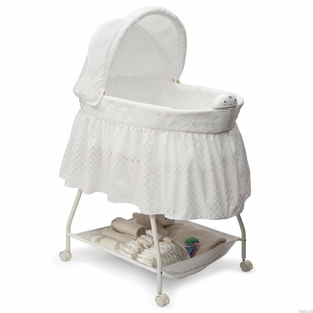 - LIGHTS AND SOUNDS: Features a calming nightlight and soothing music | Baby bassinet requires 4 AA batteries (not included)
