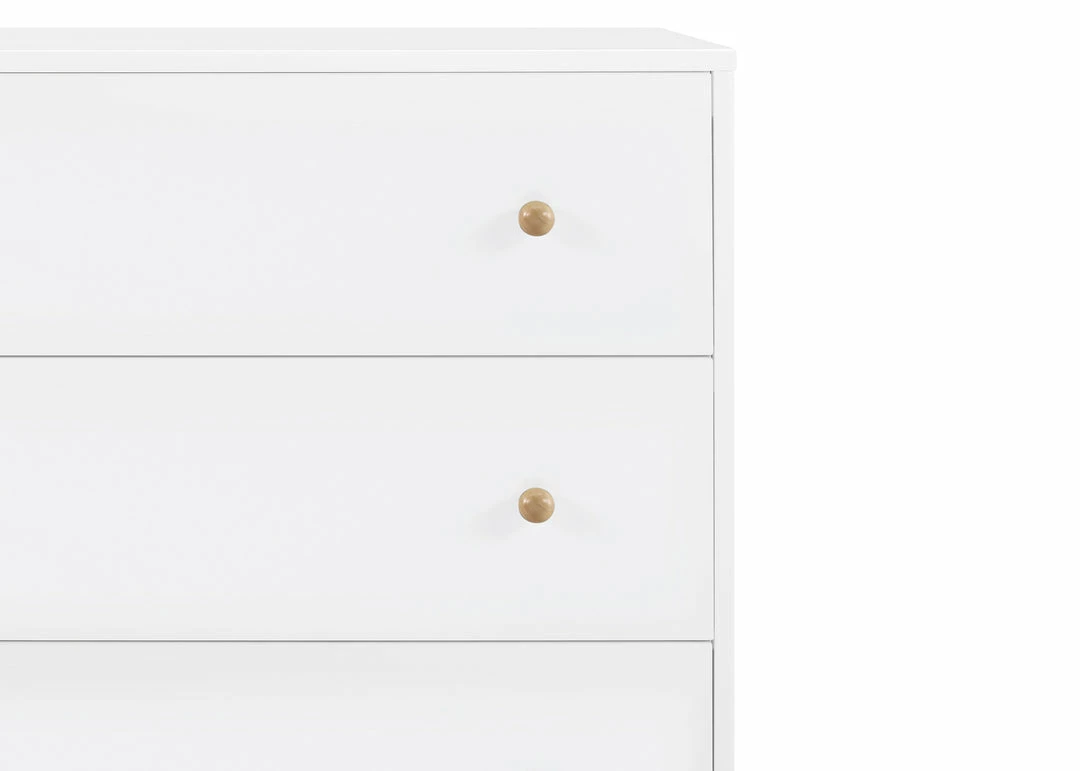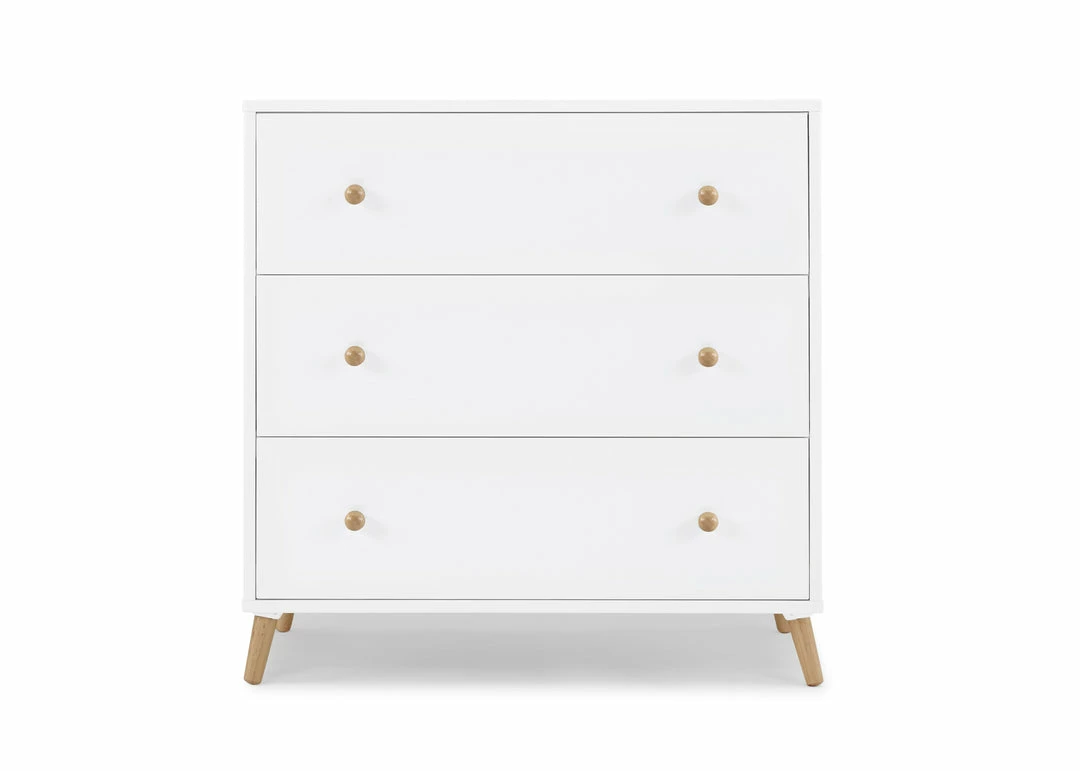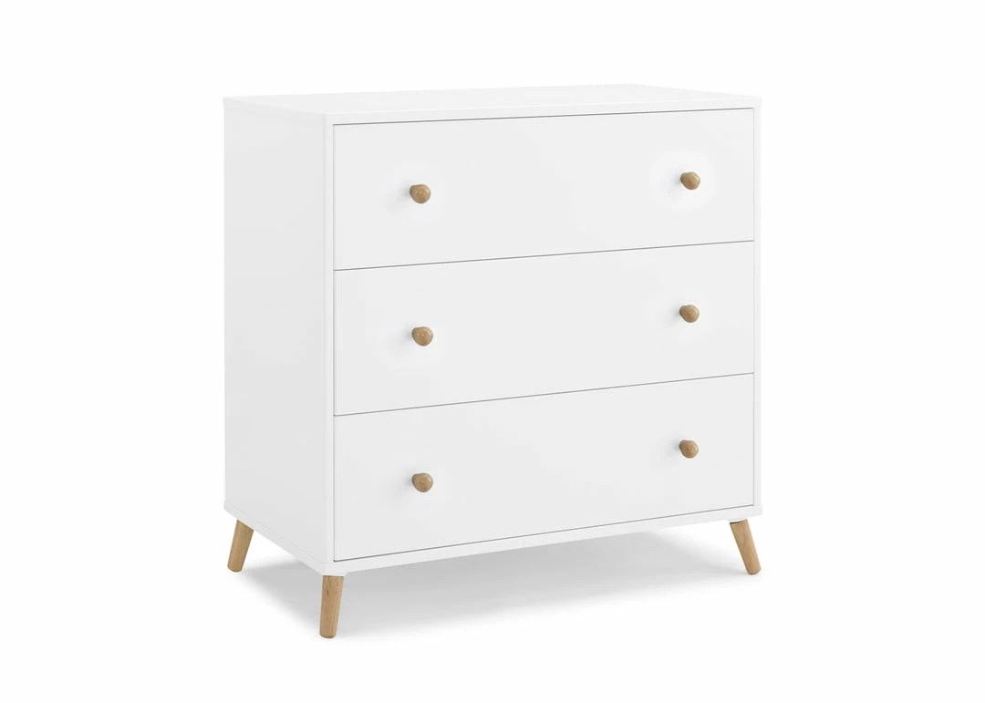 The Essex 3 Drawer Dresser by Delta Children is a must-have storage unit for stylish parents and kids! Designed to elevate modern nurseries or bedrooms, it is the perfect accompaniment to your Essex 4-in-1 Crib with its angled feet and two-toned detailing. With three spacious drawers, this sturdy dresser provides a range of practical storage possibilities to suit all your needs. Available in Bianca White/Natural. Coordinates with other items in the Essex Nursery Furniture Collection by Delta Children.