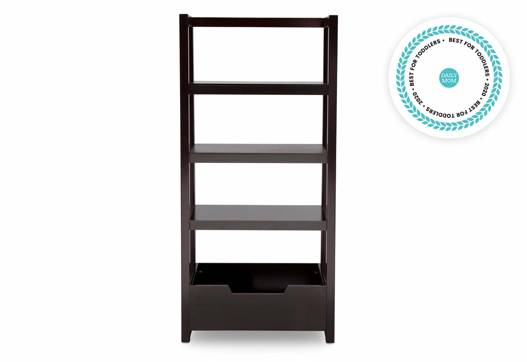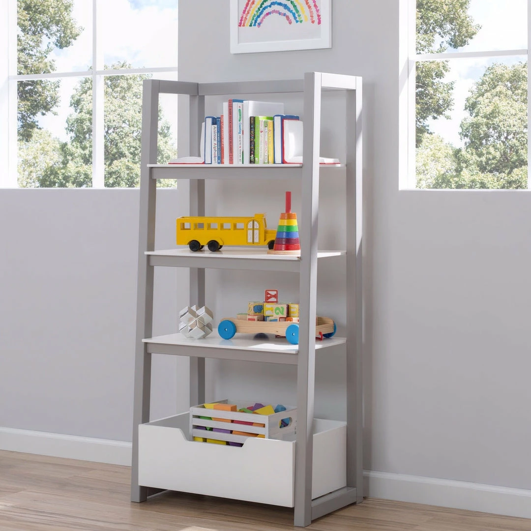 Designed to coordinate with a variety of decor styles, the Gateway Ladder Shelf from Delta Children is perfect for books, toys and more. Adding function and style to any space (adult or kids), this freestanding storage unit features a modern, A-line profile, three shelves that increase in size and a spacious bin at the bottom.