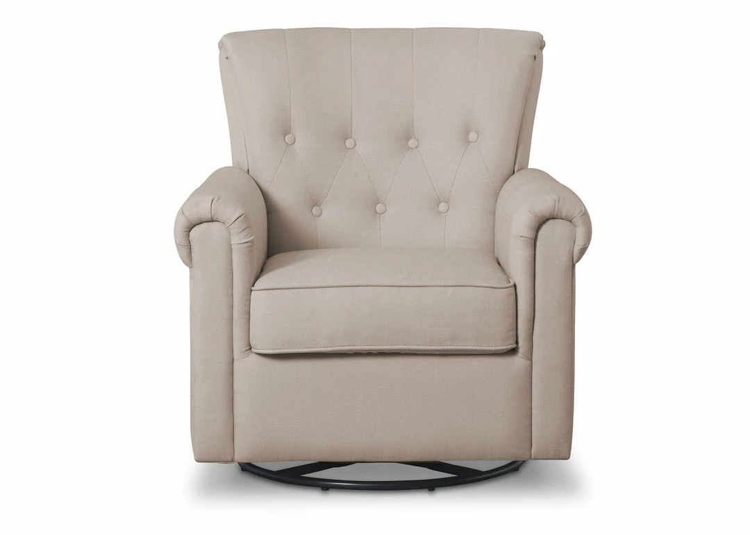The Harper Nursery Glider Sis a beautifully tailored option for you and your new arrival. The chair is built to quietly swivel 360-degrees and glide back and forth in order to create a calming environment for you to bond with your baby. Whether you use the chair for feeding time, story time, or just as a place to take a well-earned rest, this is the perfect accent chair for any room in your house