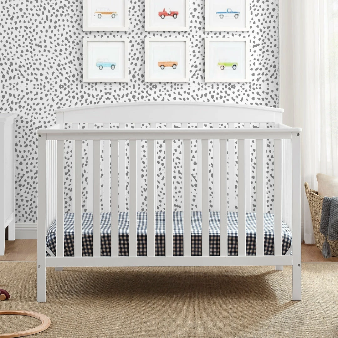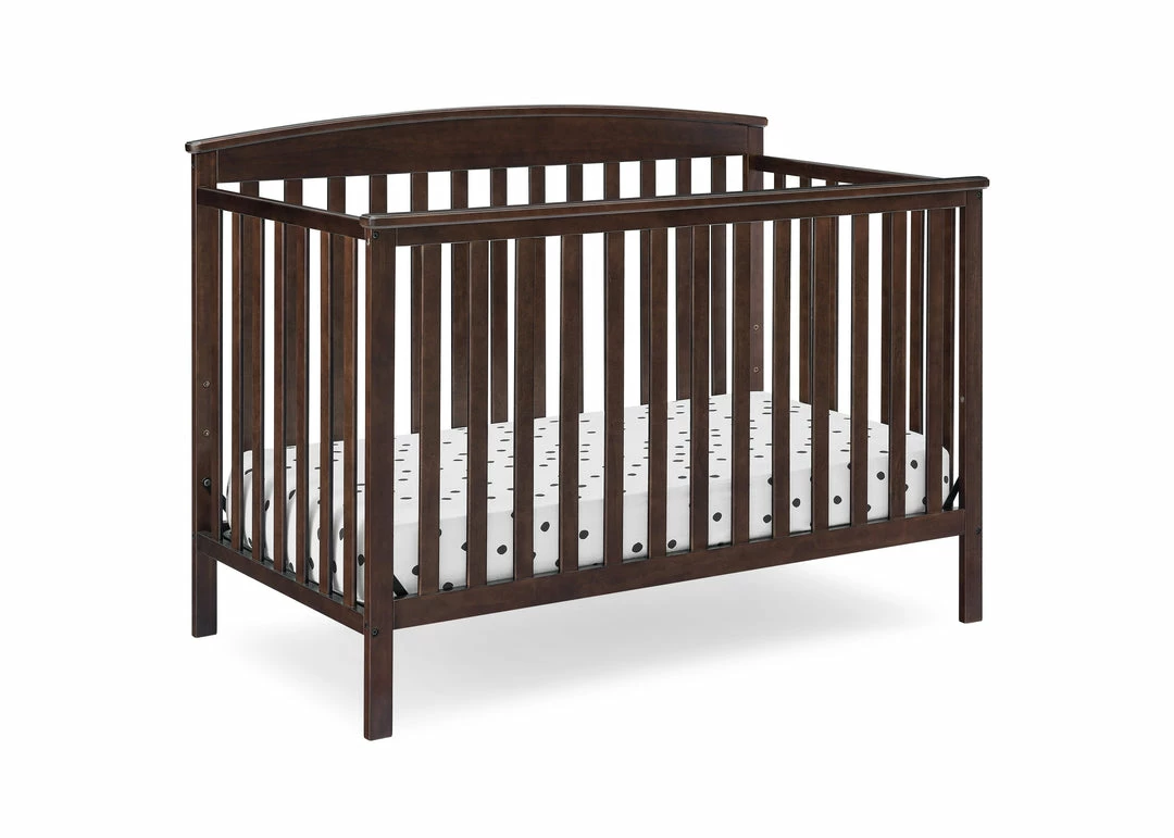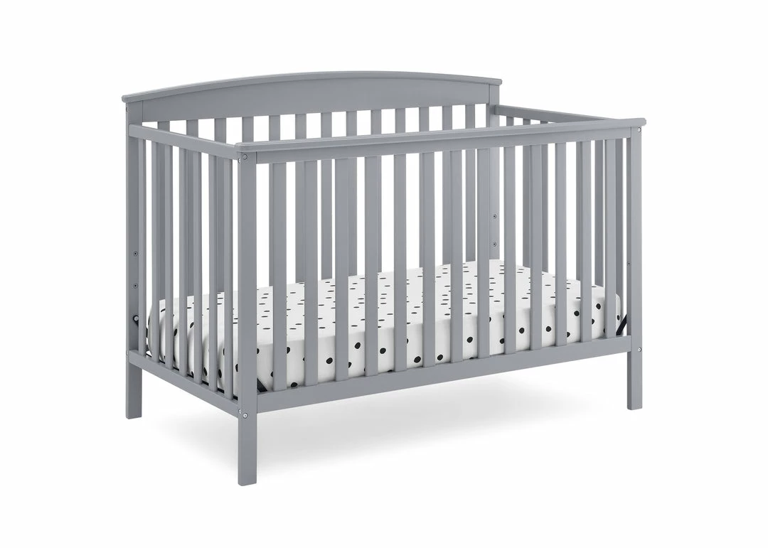 With a sturdy, built-to-last wood construction and slightly arched headboard, the Hanover 6-in-1 Convertible Baby Crib by Delta Children is a timeless choice for your little one’s nursery. Designed for many years of use, it easily converts from a crib to a toddler bed, daybed, sofa and full-size bed with or without footboard (conversion rails sold separately). Its adjustable mattress height with three positions makes it easy and safe to get baby in and out as they grow—start at the highest height level for newborns and lower as your child gets bigger. Available in Grey, Bianca White or Walnut Espresso, the Hanover 6-in-1 Convertible Crib by Delta Children coordinates with other items from Delta Children in the same finishes.