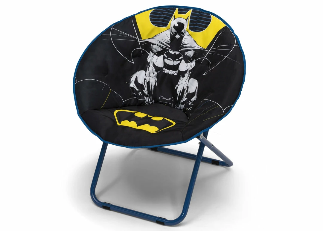 This Batman Saucer Chair by Delta Children features bold graphics fit for any Bat Cave, and is perfect for watching movies, lounging or studying in! Crafted with foldable metal legs and comfy fabric cushion packed with plush fill, this chair will be the most sought-after seat in the house! When not in use, the chair’s metal frame easily folds flat for space-saving storage and transport for your convenience. Comes ready to use with no assembly required.