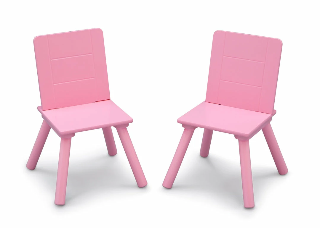 Spark years of creative play and learning with this Table and Chair Set with Storage by Delta Children. Perfectly sized for your growing child, this set features a sturdy wood table in white and two boldly colored chairs with grooved detailing. As functional as it is stylish, this set also features a built-in storage compartment at the center of the tabletop, perfect for stowing away toys, books or art supplies. Beautifully crafted, this set proves that play tables can be as tasteful, charming and multi-functional as the rest of your home décor—use it in your child’s bedroom, playroom or any living space.