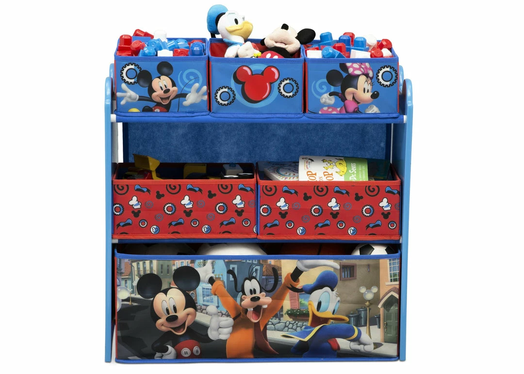 The Disney Mickey Mouse Multi-Bin Toy Organizer by Delta Children allows kids to join Mickey and his friends on a cleanup adventure! Featuring a sturdy frame, this practical storage piece has six fabric toy bins in three different sizes to stow a ton of toys, taking any space from messy to organized (magically!). Adorned with colorful graphics of Mickey Mouse, Minnie Mouse, Donald Duck, Goofy and Pluto, this amazing toy box alternative is as practical as it is fun.