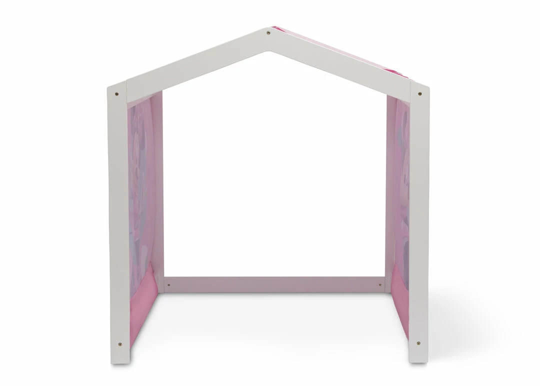 Kids can create their very own Clubhouse with this Disney Minnie Mouse Indoor Playhouse with Fabric Tent by Delta Children. The durable wood frame is draped in colorful tent fabric that features bold graphics of everyone’s favorite mouse, Minnie. A magical fort for boys and girls to play or read, it’s designed to enrich imaginations and encourage kids to create a whole make-believe world inside–decorate the inside of the playhouse with a table, stuffed animals, throw pillows, blankets and more! This large wood playhouse stands just under 4 feet tall, and its sturdy construction ensures your child will make this a special place for creative play for years to come! Roomy enough for multiple children. Designed for indoor use only.