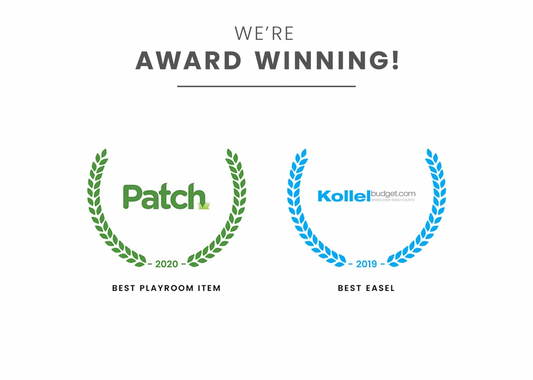 - Easel, bins and pull down paper roll with 33’ feet of paper