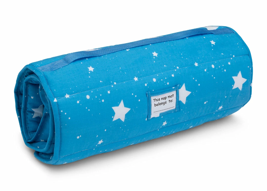 Your little one will drift off to dreamland in absolute comfort with this Nap Mat by Delta Children. A great sleeping bag alternative, this nap mat is perfect for smaller children to use at daycare, preschool, nursery school, home or for travel. The extra-long 53-inch length, thick 1-inch padding and included pillow provide the cozy support your toddler needs, especially if the mat sits on a bare floor. The attached flannel blanket will keep your little one warm no matter the season. Its travel-friendly lightweight design can be rolled up, closed with the security strap and carried by your child with the attached carry handle. The compact, space-saving design of this nap mat allows it to be stored anywhere in the house when not in use. If your toddler experiences an incident during naptime, no worries, our nap mat is machine washable! Machine wash on gentle cycle, tumble dry low. Personalize their nap mat with the included name tag for easy identification. Recommended age range: 3-6 years.