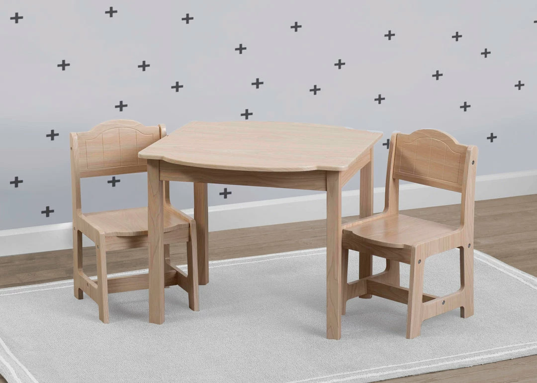 Create an inspiring place for young kids to play, learn or eat with the Newport Table and 2 Chair Set by Delta Children. Sized just right for your growing child, it will provide years of creative fun. The classic, elegant look of this wood table and chair set is inspired by costal charm with its gentle curves and shiplap-like paneling. Beautiful and practical, this set will complement existing bedroom, playroom or living room decor, which makes this set a piece you’ll be proud to display in your home. Coordinates with other items in the Delta Children Newport Collection.