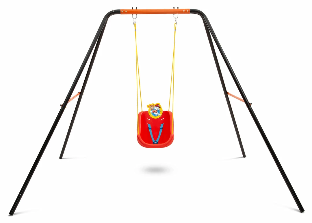 Good times will be in full swing when you get your little one this PAW Patrol 2-in-1 Outdoor Swing by Delta Children! The swing’s comfortable bucket seat and high back provides support while the three-point safety harness ensures your child stays securely in place—the harness can be removed as your child grows. Colorful graphics for Marshall and Skye at the top of the swing add action-packed fun. Made from durable, weather-resistant plastic, it will withstand the elements for many years. Plus, this fun swing comes with everything you need to attach it to your existing play structure, the included rope measures 36-inches from the top of the swing. Ideal for children ages 9-48 months.