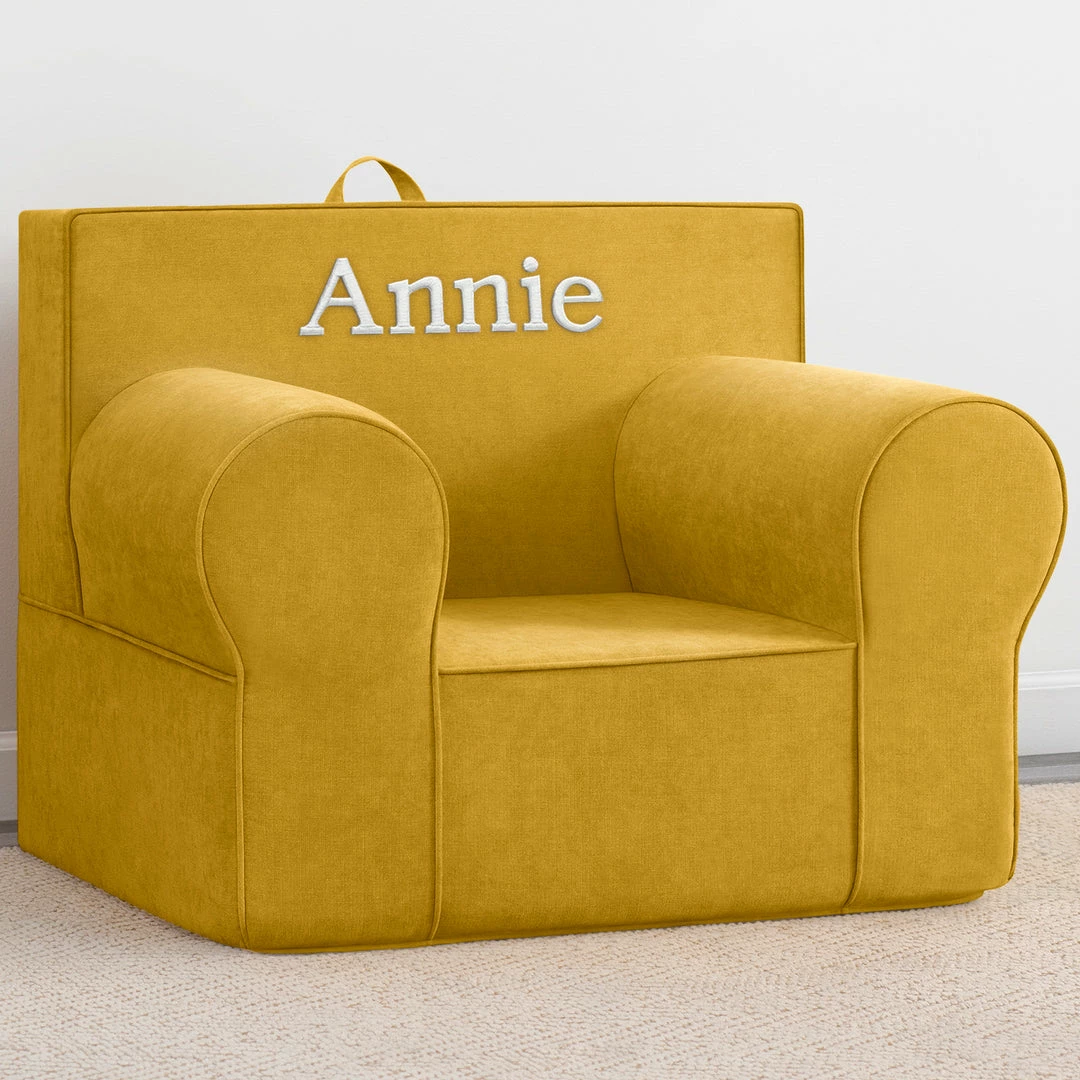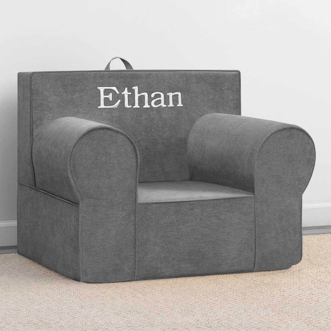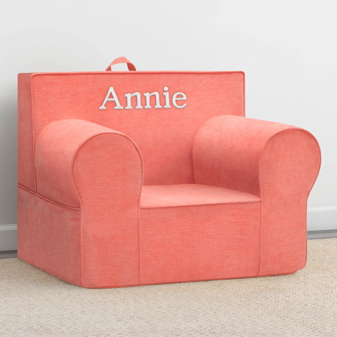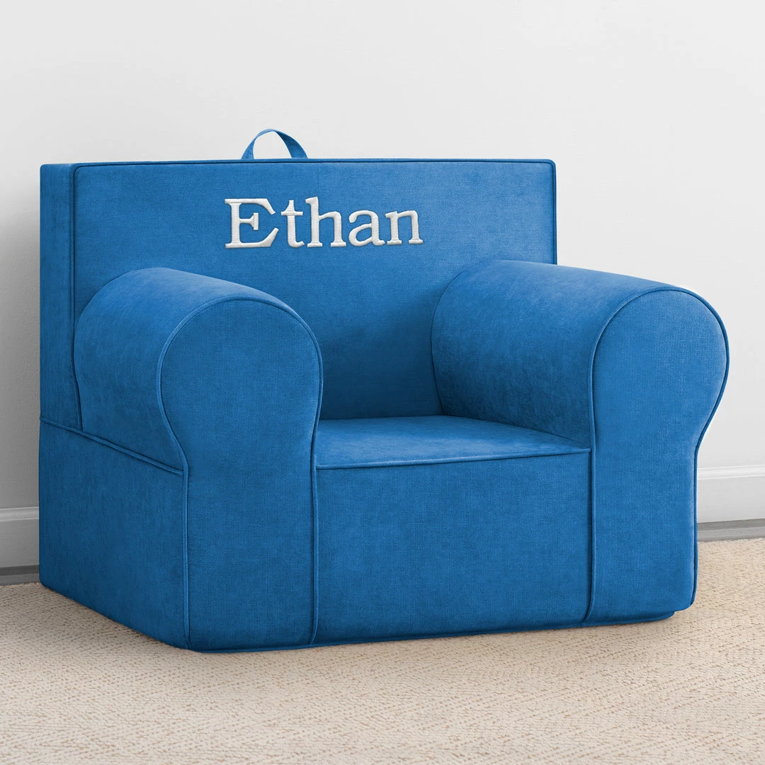 This Personalized XL Cozee Foam Chair gives your child a seat all their own! Our largest chair offers a snuggly spot for reading, watching TV, or just hanging out, and is available in a range of colors and features a removable/washable slipcover for easy cleaning. It’s perfect for the playroom, living room, or your child’s bedroom. Adorable anywhere in the house, this supportive foam chair has a handle on top that makes it easy to move from room to room. Personalize it with a name for the perfect finishing touch. Recommended for ages 18 months to 12 years+. Assembly required.