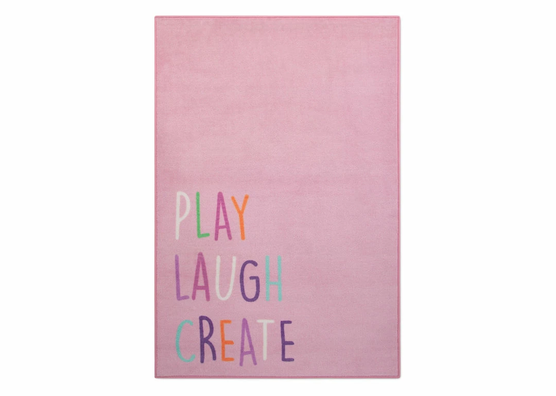 Give kids a happy reminder to seize the day and play with this Play/Laugh/Create Rectangle Area Rug by Delta Children. This fun rug features a sweet saying and a ton of charm. A great option for your child’s bedroom or playroom, this generously sized area rug is made from soft and durable materials to ensure it’s the perfect place to sit and play or read. The rug’s non-slip latex backing makes it safe to use on types of flooring and reinforced borders prevent fraying.