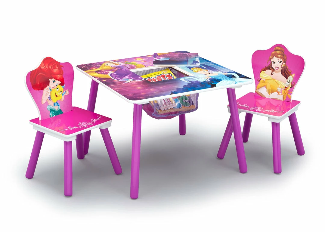 Create a space worthy of pint-sized royalty with this Disney Princess Table and Chair Set with Storage from Delta Children. Featuring colorful graphics of Disney’s favorite princesses, Belle, Cinderella, Rapunzel and Ariel, the spacious tabletop with built-in storage in the center, and two coordinating chairs, makes tackling homework, crafting or snack-time easy (and so much fun!).