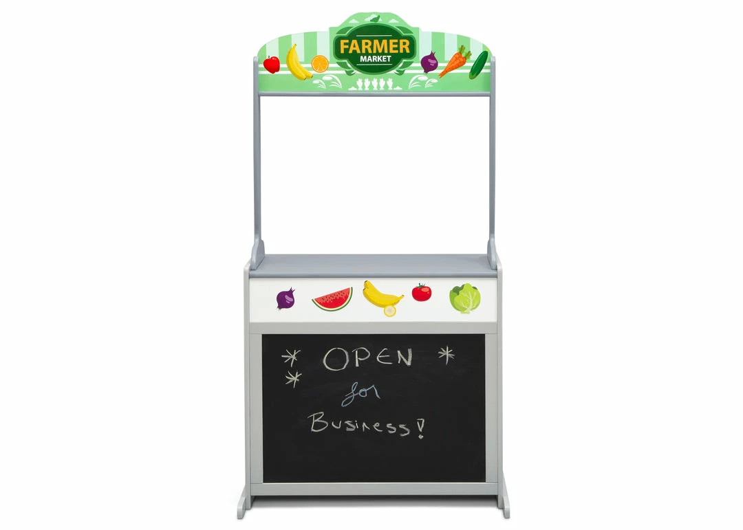 Ideal for your little fire fighter, first responder or farmer, the Reversible 4-in-1 Pretend Play Center by Delta Children features four interchangeable storefronts for endless imaginative play. The included storefront panels are printed in fun themes, so kids can pretend they are at the farmers’ market, firehouse, auto body shop or first aid station. Imaginative play helps your child’s development by building on their language skills, social and emotional growth and well as their problem-solving skills. On one side of the play center, a large chalkboard allows kids to draw while the other side features six plastic storage bins for plenty of storage. Above the chalkboard and storage bins there is space to decorate with the included reusable vinyl stickers that match the storefront themes.