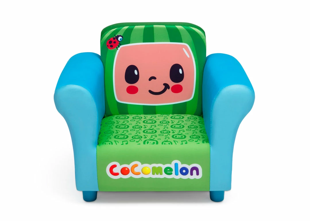 Kids will love cuddling up to their favorite CoComelon characters with this this CoComelon Upholstered Chair by Delta Children! A cozy toddler chair, it features a durable wood frame and colorful graphics of JJ and all his friends. A cozy chair made for all-day comfort, it’s the ideal seat for reading, watching movies or just relaxing.