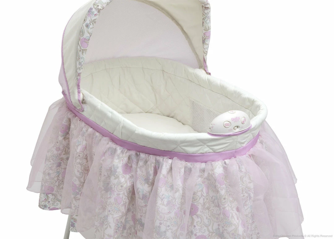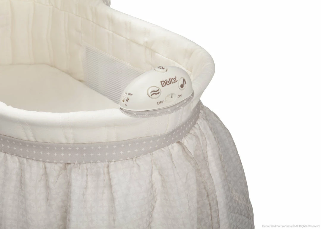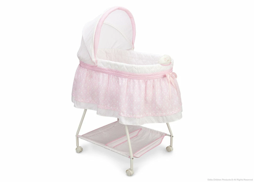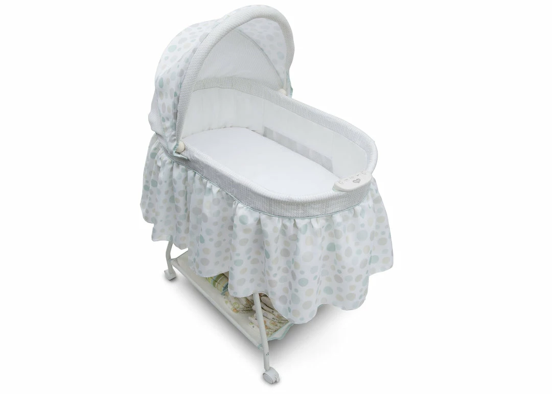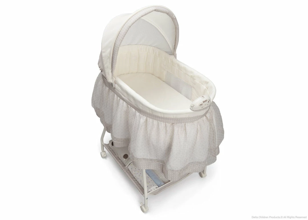 Providing a sense of security while also delivering on style, Delta Children’s Sweet Beginnings Bassinet boasts an adjustable canopy and an electronic music module with nightlight and gentle vibration. This cozy bassinet helps parents establish healthy sleep habits right from the start.