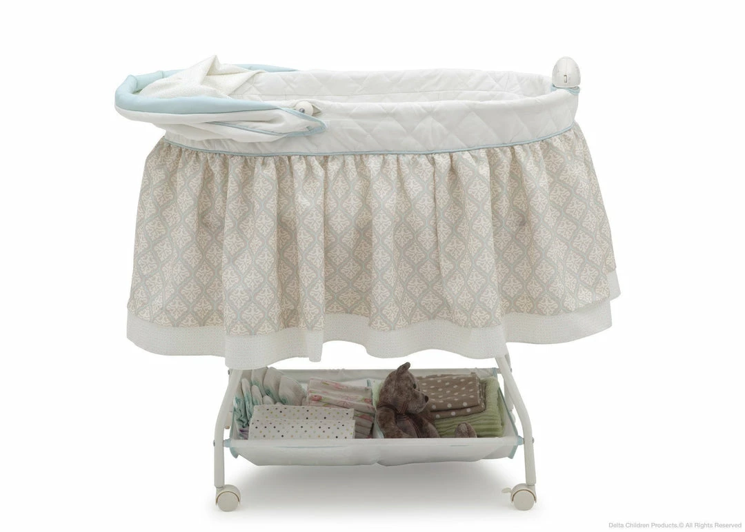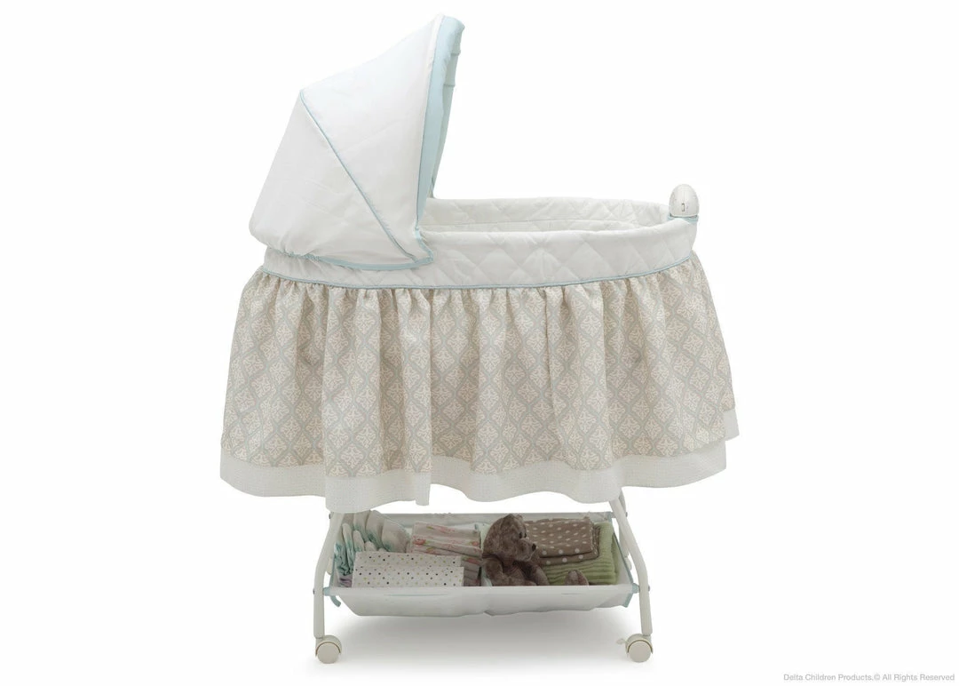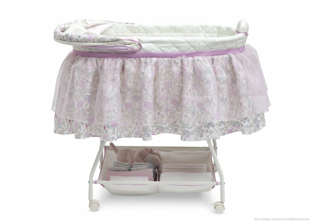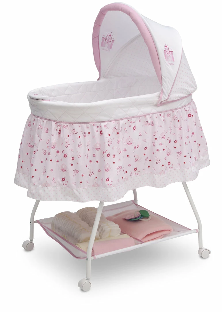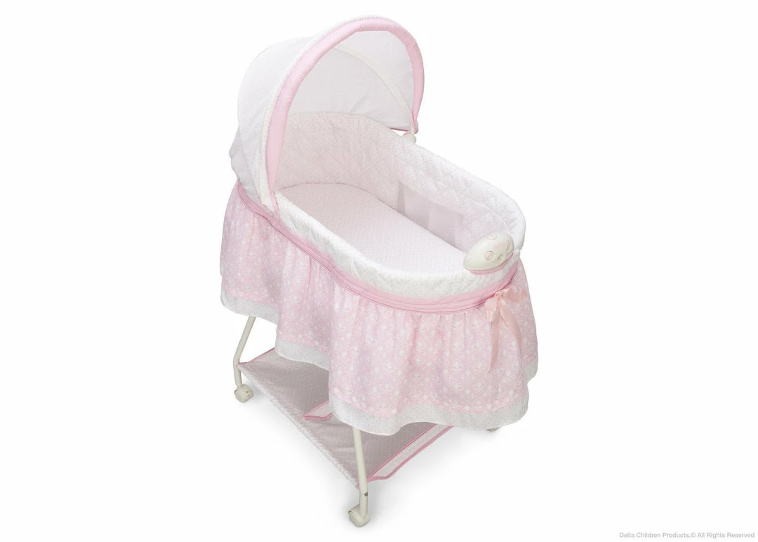 Providing a sense of security while also delivering on style, Delta Children’s Sweet Beginnings Bassinet boasts an adjustable canopy and an electronic music module with nightlight and gentle vibration. This cozy bassinet helps parents establish healthy sleep habits right from the start.