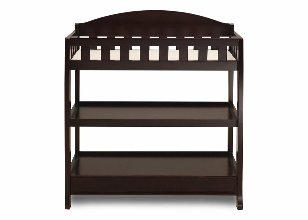 Change or dress your baby in absolute comfort with the Wilmington Changing Table by Delta Children. Designed with a timeless bell-shape silhouette and versatile features that make diaper changes easier, this changing table has two shelves that allow you to store your child’s changing and dressing necessities nearby. The included changing pad comes with an attached safety strap and is placed in a fully enclosed dressing area that provides extra security. The Wilmington Changing Table is available in several popular finishes and coordinates with many Delta Children cribs.
