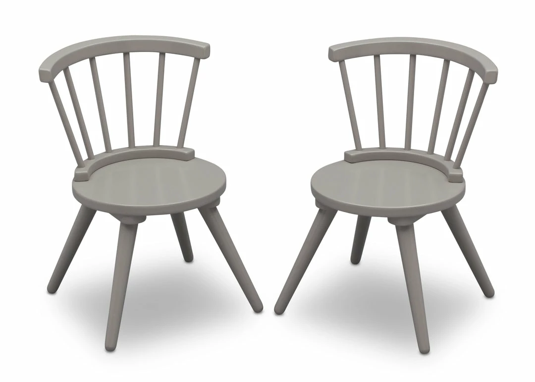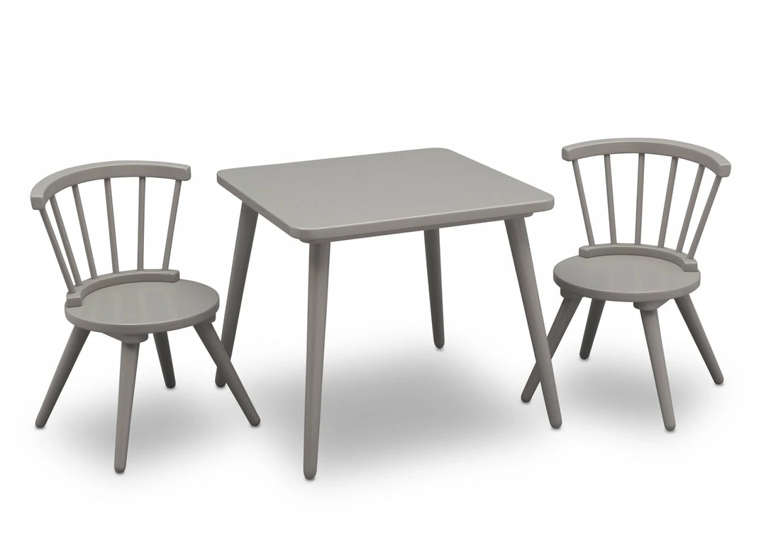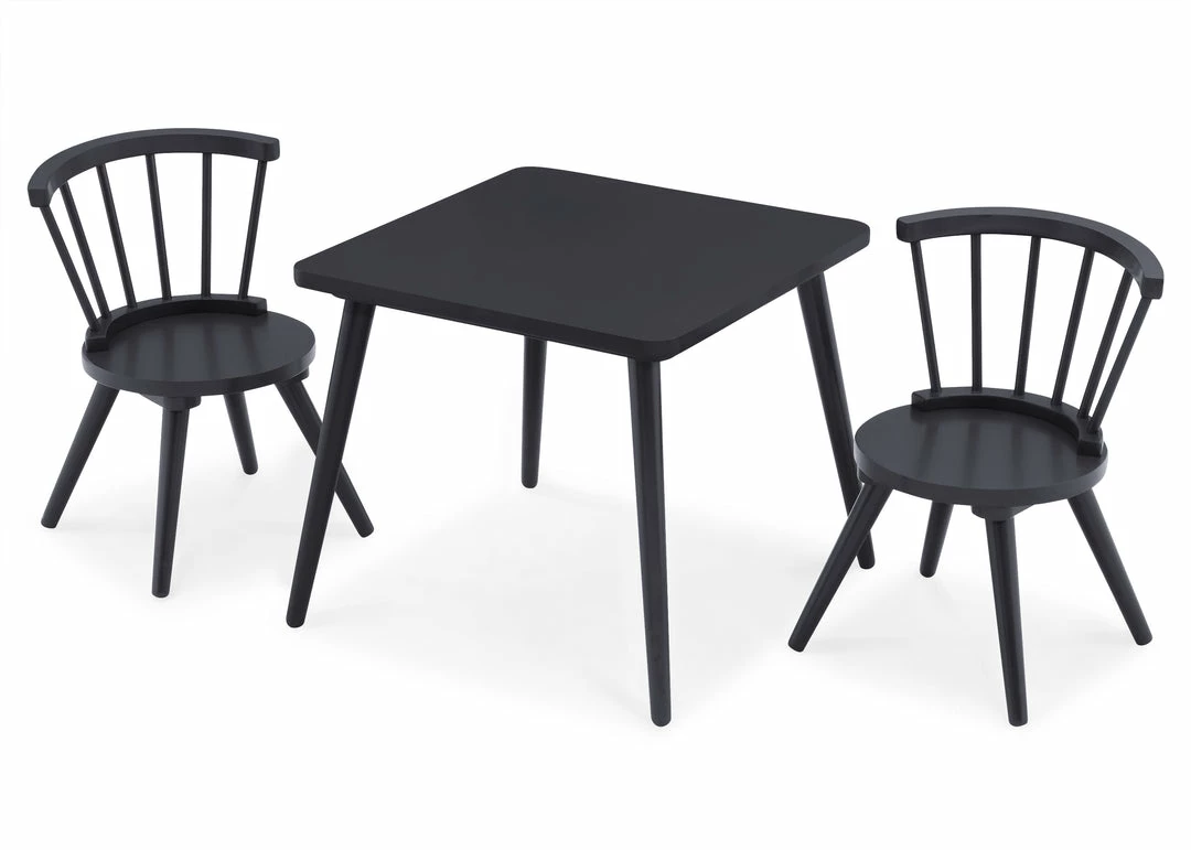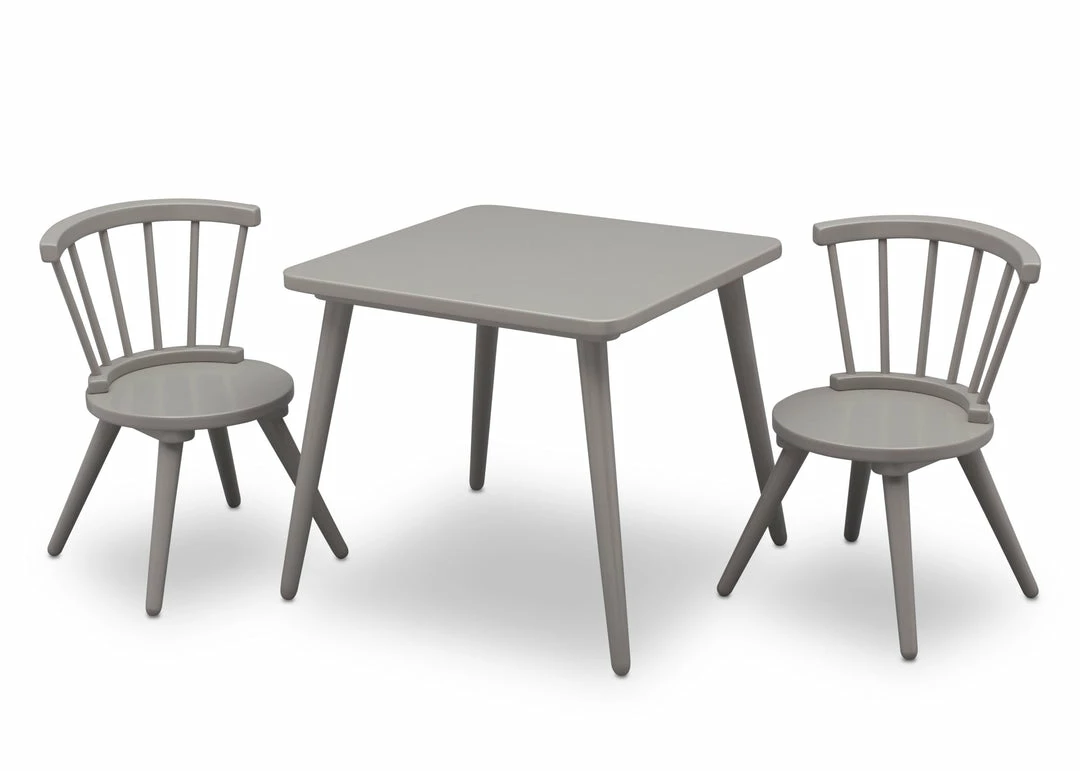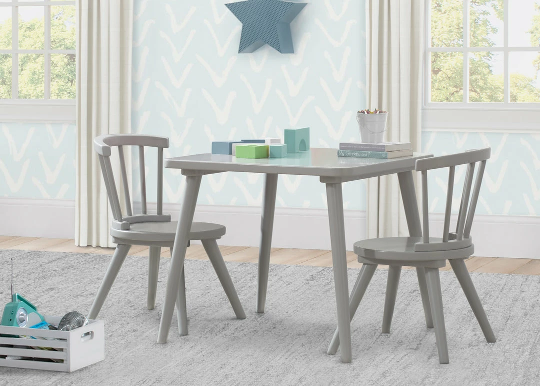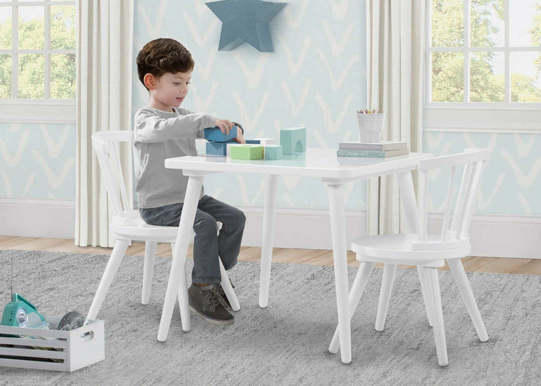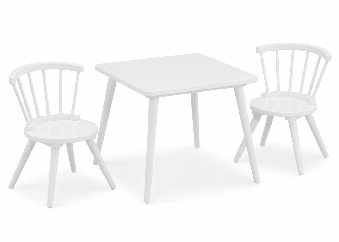 Create a fun and inspiring spot for crafts, homework or snack time with the Windsor Table & 2 Chair Set by Delta Children. Perfectly sized for young children, this practical play table features a spacious square tabletop and two coordinating chairs with vertical spokes and curved backs. Constructed from strong and sturdy wood, this long-lasting table and chair set complements any child’s bedroom or playroom and is stylish enough to be placed in shared living spaces. To add two additional seats to this table, please purchase the Delta Children Windsor 2-Piece Chair Set (sold separately).