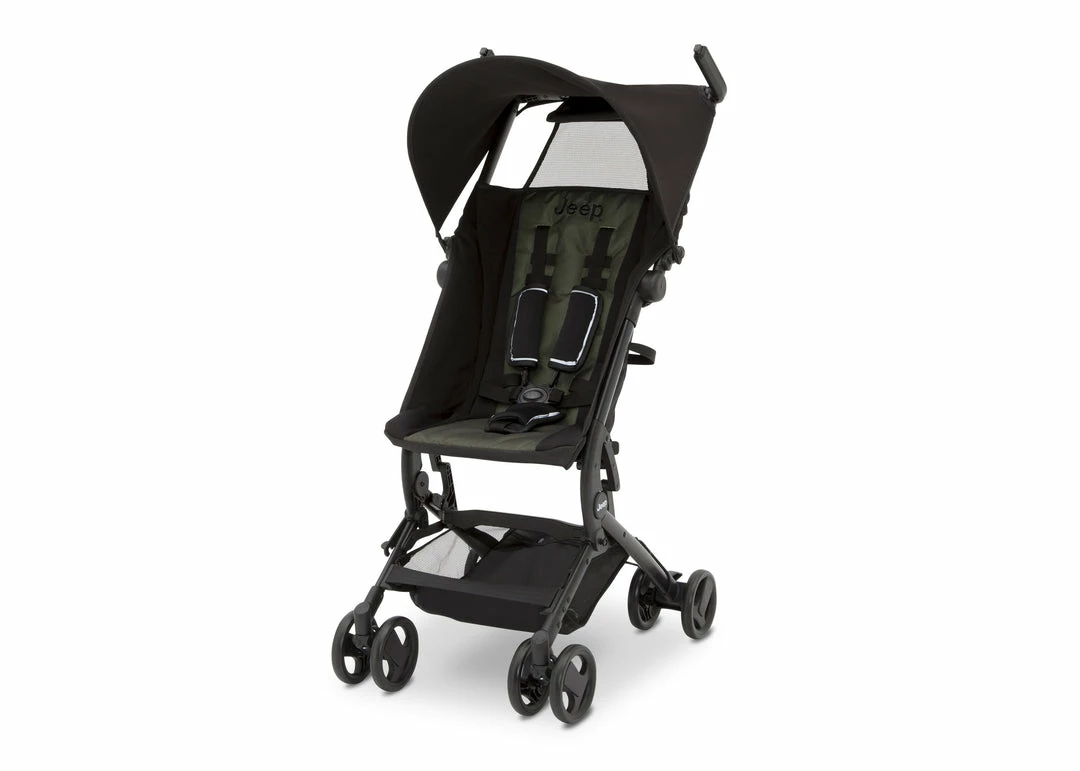 Go further with the Jeep Clutch Plus Travel Stroller by Delta Children! An extremely lightweight travel stroller, the Jeep Clutch Plus compactly folds down to easily fit into airplane or train overhead bins. The attached handle makes it a breeze to carry through the airport, amusement park or just to your car. The stroller’s reclining seat and oversized canopy allows you to accommodate your child’s comfort anytime and anywhere, while the reflective shoulder straps keep you and your baby safe. Agile and effortless, front swivel wheels with suspension make navigating busy streets and turning corners easy. That’s not all, 1680D fabric on the canopy and seat is waterproof, antibacterial and durable for long-lasting use. Ideal for families always on-the-go or for an upcoming trip, the Jeep Clutch Plus Travel Stroller by Delta Children is a lighter, more convenient way to stroll with your little one.