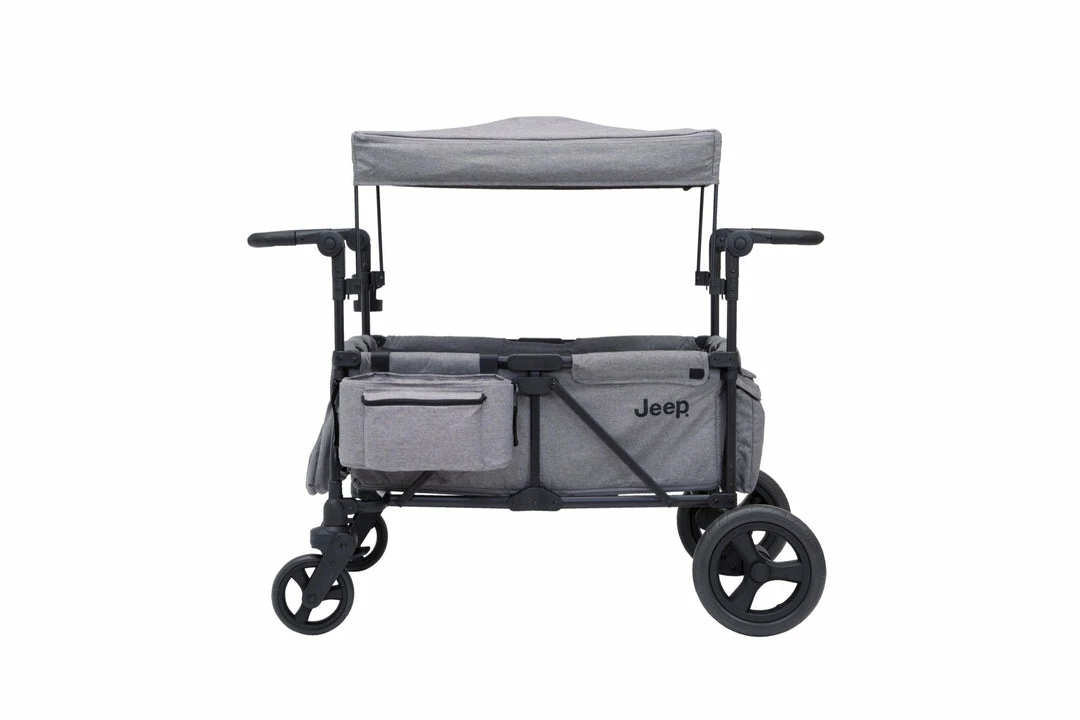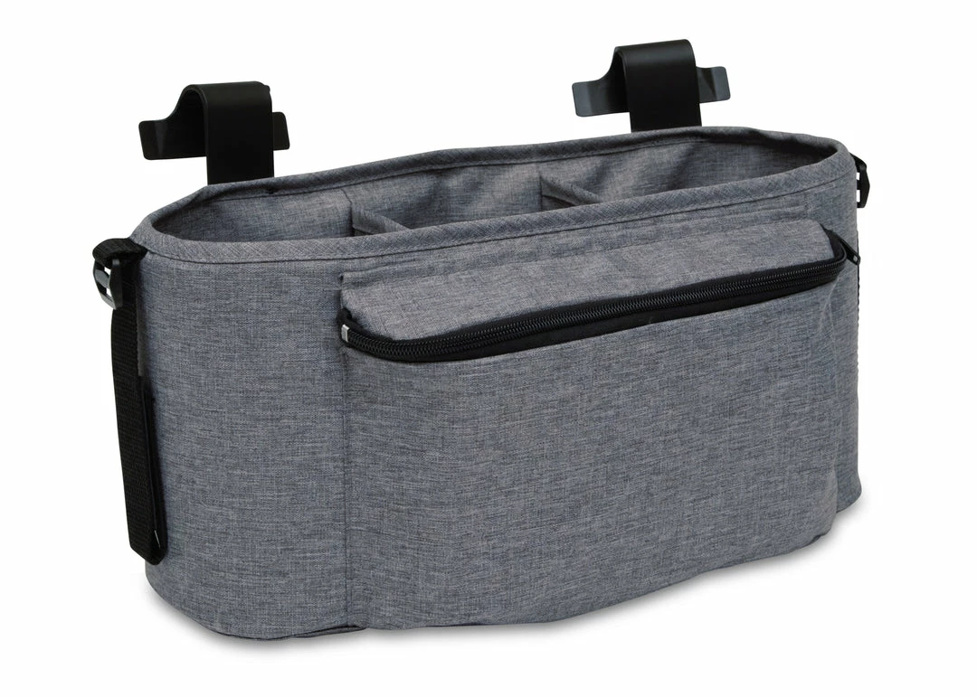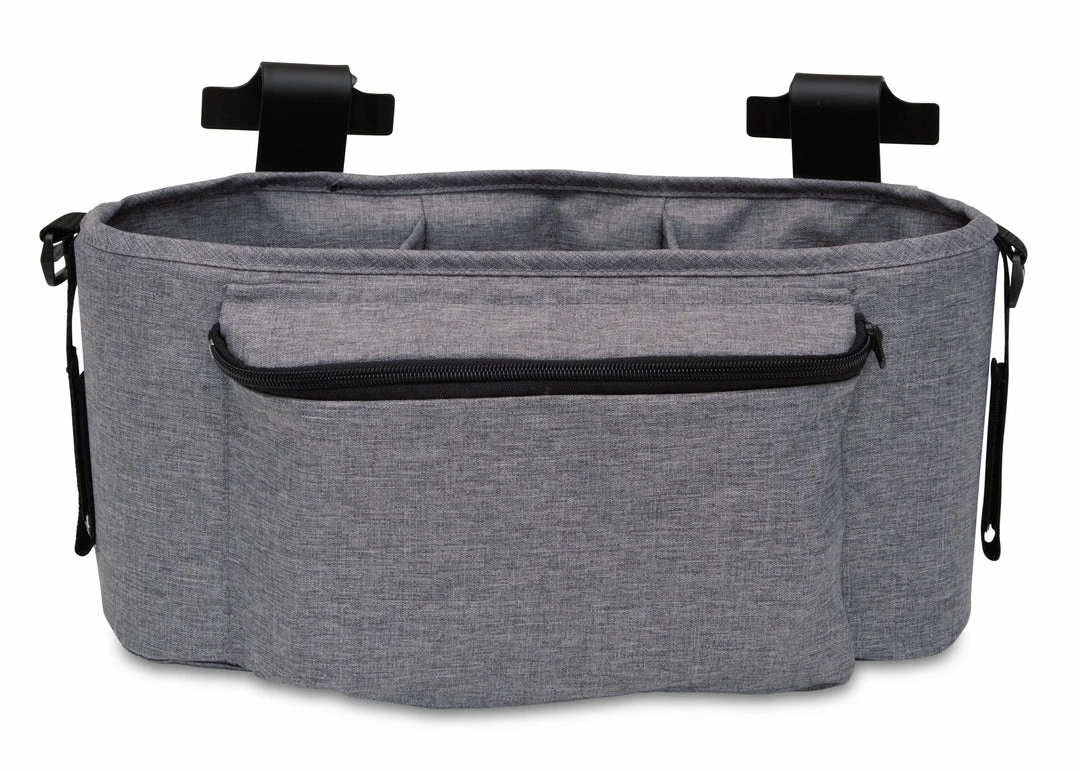 Stay organized while on the go with the Jeep Parent Organizer for Wrangler Stroller Wagon. This roomy organizer with three compartments and zipper front pocket will keep all your essentials within reach. A great addition to your Jeep Wrangler Stroller Wagon (#60001) for additional storage, you can attach it two ways–use the included clips to attach it to the wagon frame or use the straps to attach it to the wagon handlebar.