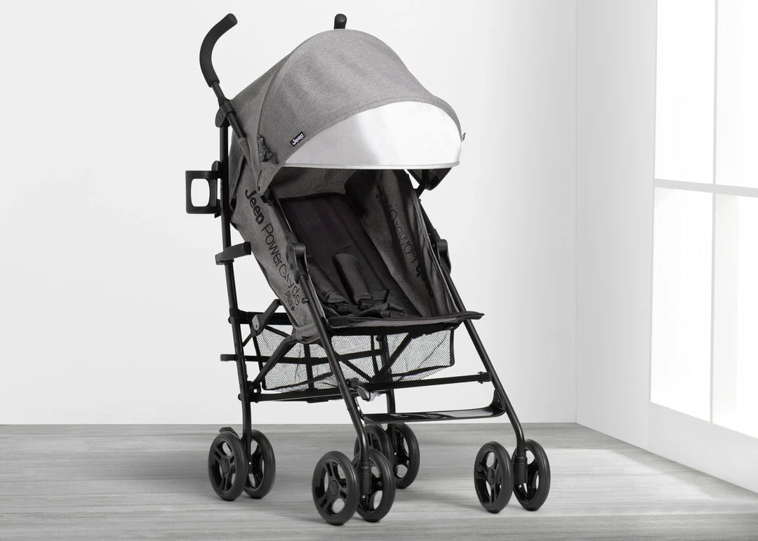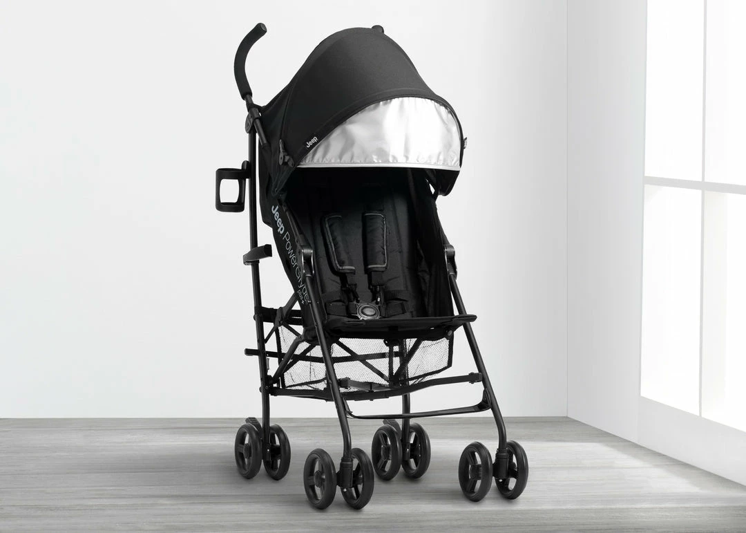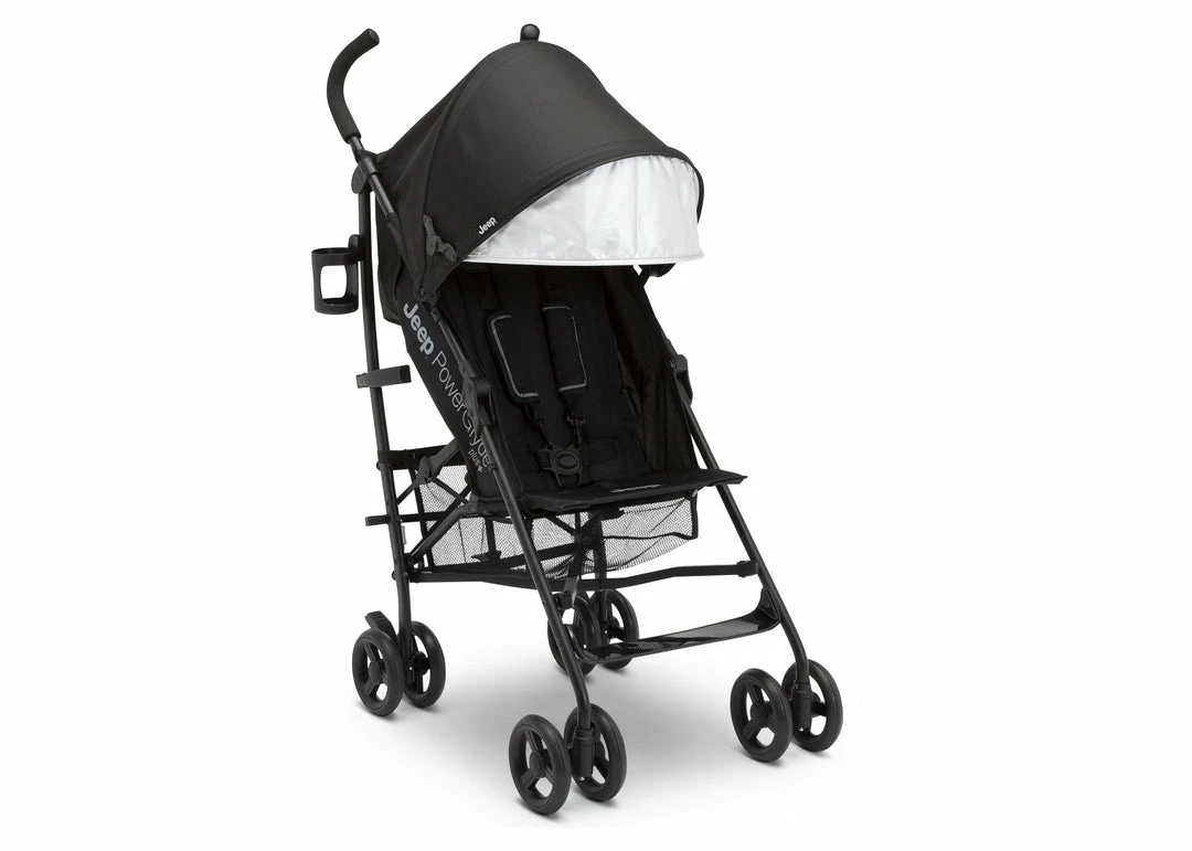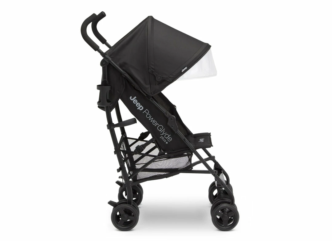 Wherever the road takes you, the Jeep PowerGlyde Plus Stroller by Delta Children will deliver the best ride ever. The Jeep PowerGlyde Plus offers the most advanced handling thanks to all-new front wheels that feature precision technology, making it easier than ever to glide, turn and maneuver any surface. Ideal for travel or everyday use, this extremely lightweight stroller with an aluminum frame weighs under 14 pounds and features a compact umbrella fold with an auto lock design and carry handle. An extra-large extendable canopy with UPF 50+ sun visor will protect your child from the elements and a four-position reclining seat ensures baby is comfortable during walks, near and far. Some additional features of this lightweight stroller include: five-point safety harness, extra-large storage basket, cup holder and swivel front wheels. This stroller is recommended for infants 6 months up to 50 pounds. Let’s Glyde!