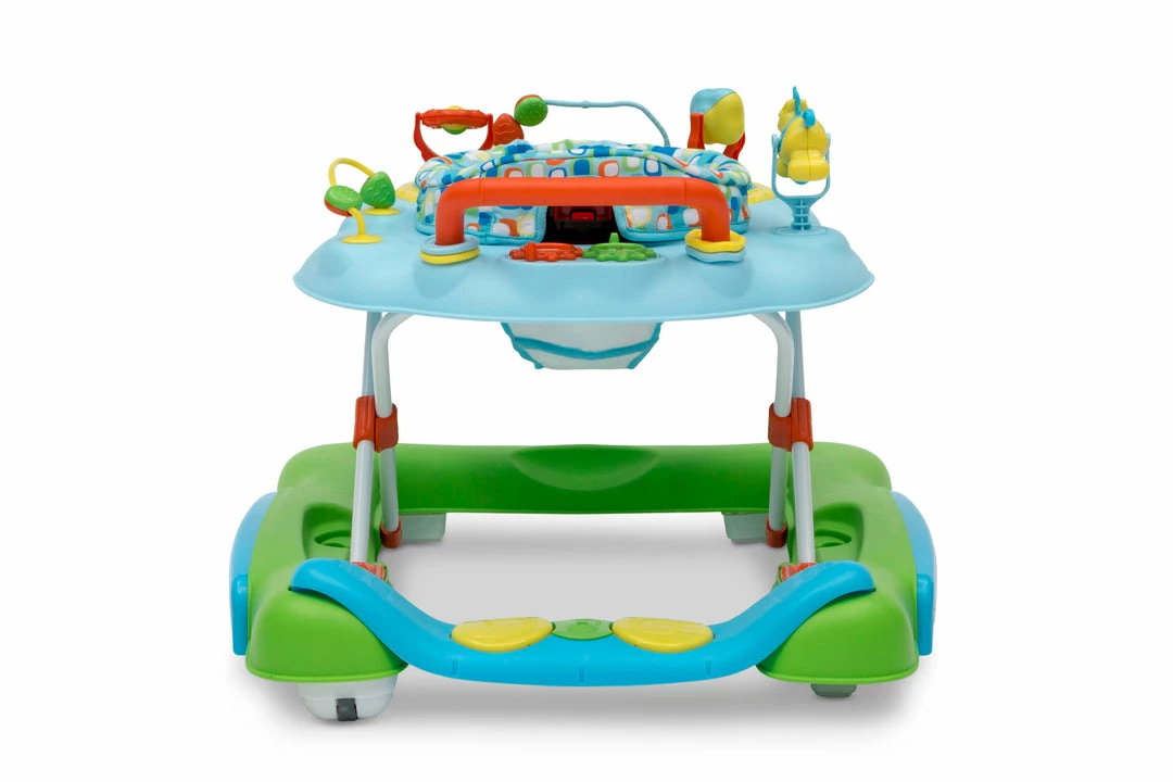 The Little Folks 4-in-1 Discover & Play Musical Walker by Delta Children will have little ones moving their feet to the beat! Baby will activate different sounds with their feet as they play–the musical foot petal helps develop coordination and gross motor skills while also promoting music appreciation. An adaptative walker that helps babies balance, stand and walk, it features four distinct modes to accommodate your growing child. The 360-Degree Activity Center Mode allows baby to interact with all the toys, sounds, colors, shapes and animals on the walker by spinning all the way around in the comfy seat. The Rocker Mode sways gently back and forth while still incorporating all the toys from the Activity Center. Walker Mode encourages baby to simulate walking movements, and the Push Behind Mode provides balance for new walkers with a sturdy handle on the back. A great toy for baby, the 4-in-1 Discover & Play Musical Walker will drum up some fun every time you use it!