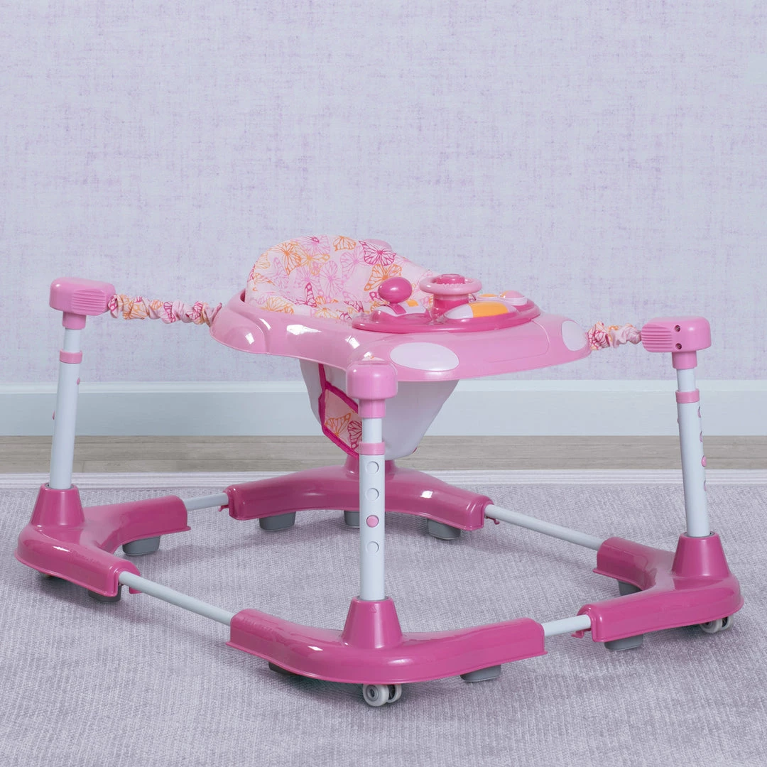 Teach your child to balance, stand and walk with the Little Folks First Steps Learn2Walk Balancer by Delta Children—this patented bungee balancer is the first of its kind. Normally, it takes babies 1,000 hours of practice to learn how to walk, not with this balancer! It uses innovative bungee technology to help your little one naturally find their center of gravity without ever falling. The bungees allow your child to tilt, but gently pull them back to the upright position, so they can mimic real walking movements. Invented by a Physician with special interest in child ambulatory development, the Little Folks First Steps Learn2Walk Balancer by Delta Children taught his daughter how to walk by strengthening her torso and legs while learning how to balance. Every bounce supports your baby’s development, strength, balance and coordination. With three modes and adjustable height seat, this balancer effortlessly grows with your child. The stationary play station mode keeps baby entertained with interactive lights, sounds and toys, remove the toy tray to reveal a spacious snack area. While in stationary mode, your child can engage the bungee technology to take their first steps. When in balancer mode, your child will discover walking movements that encourage gross motor skills.