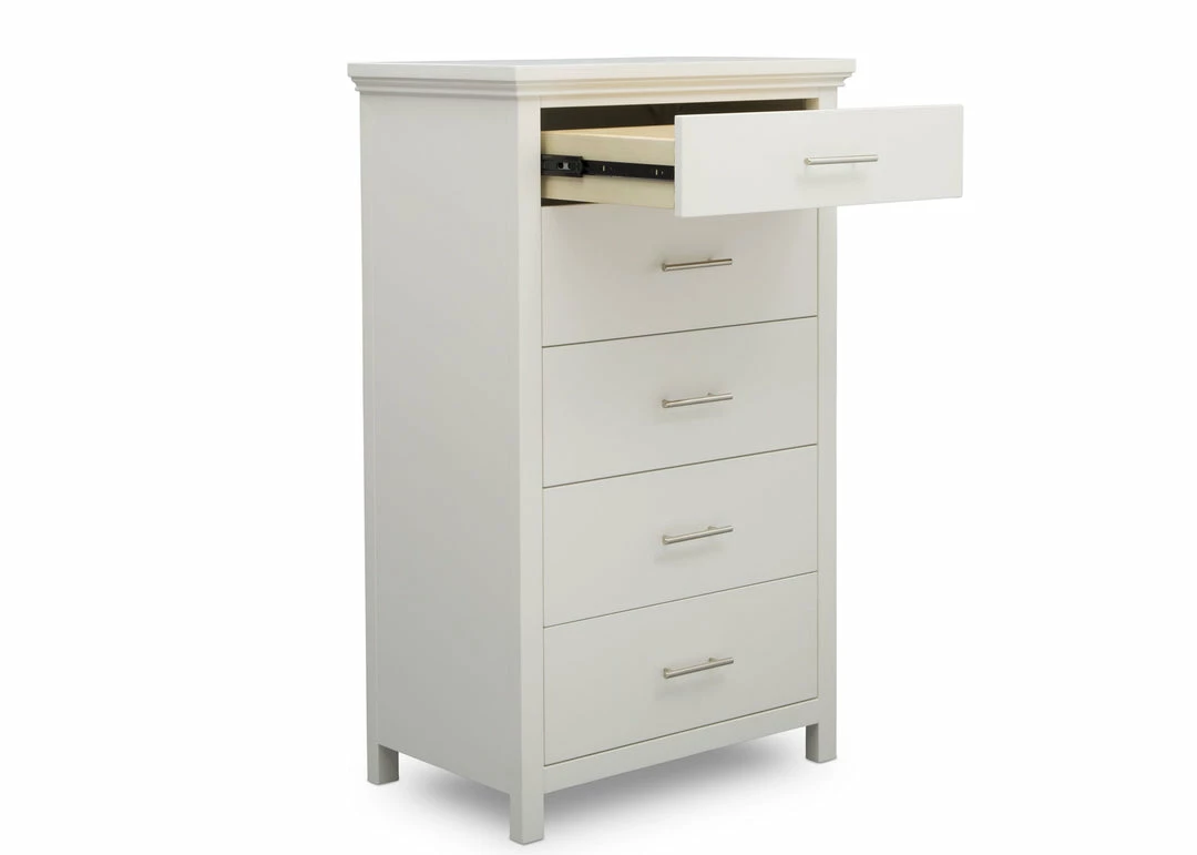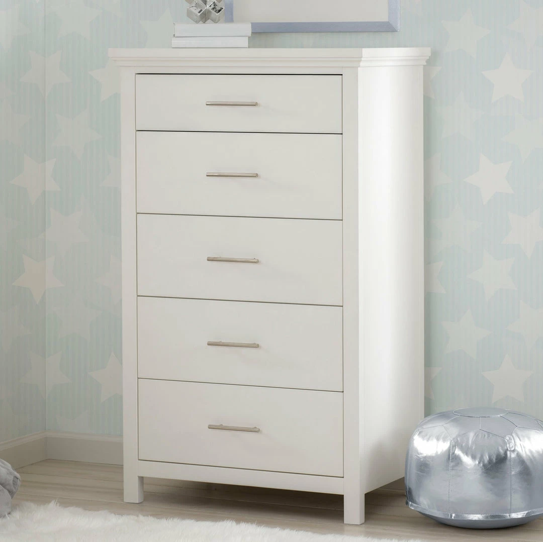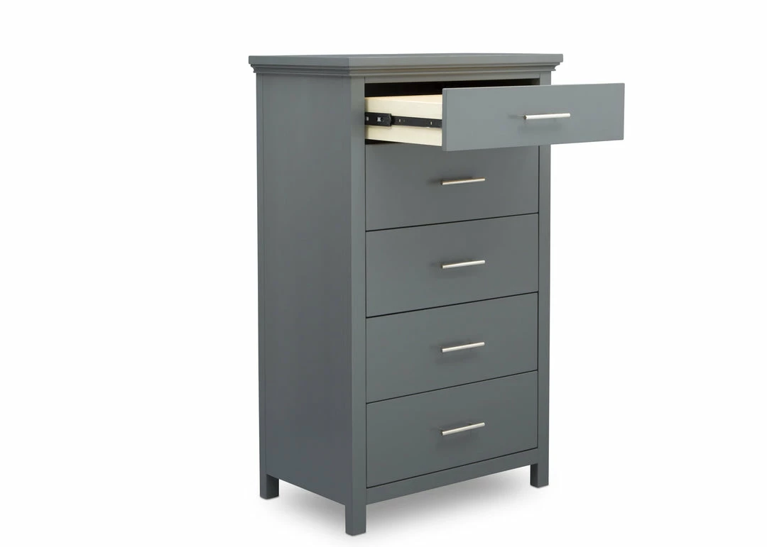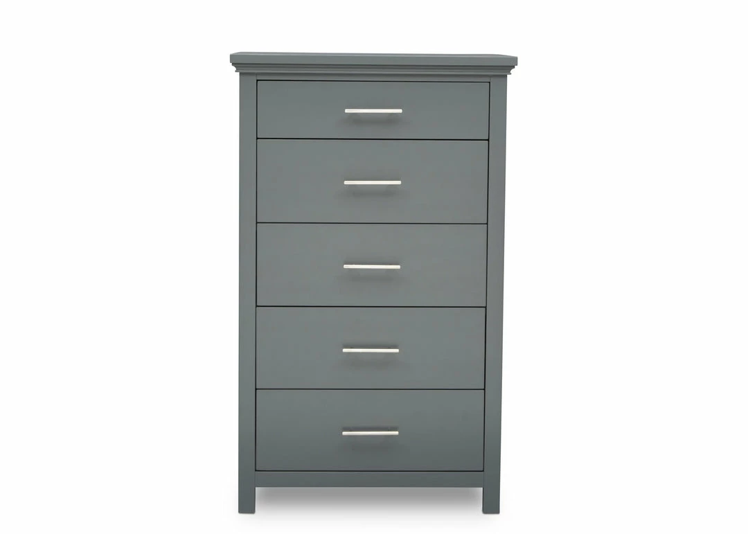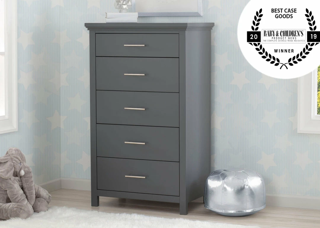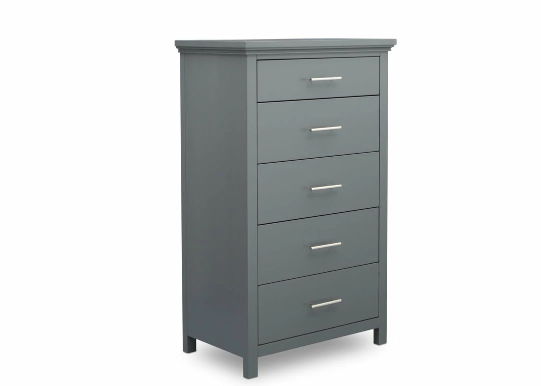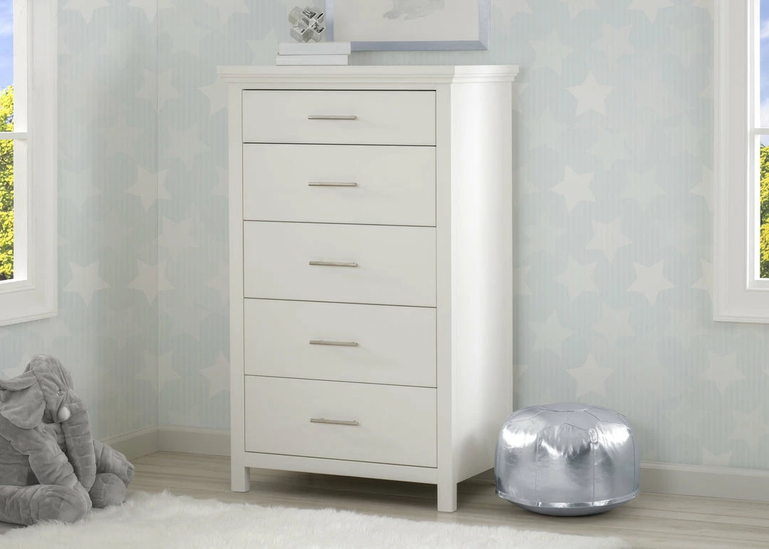 The Avery 5 Drawer Chest is the ultimate multitasker, storing all of your child’s clothes while taking up minimal floor space. Edgy accents, like the nickel drawer pulls add modern charm to this tall chest that has clean lines and simple proportions. Designed to withstand years of use, this well-built chest features English Dovetail construction and soft close drawers.