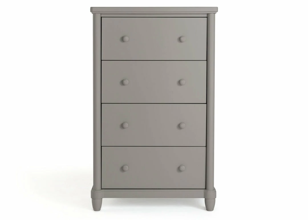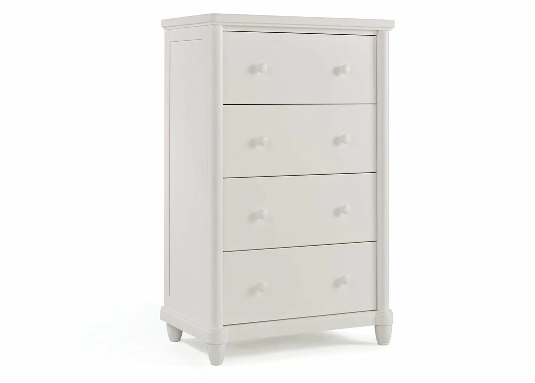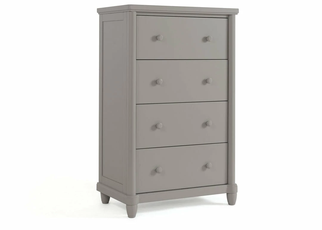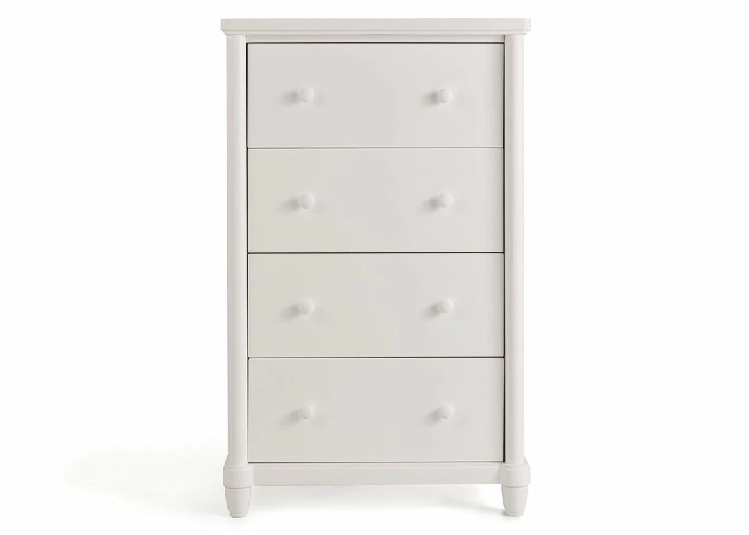 The Belmont 4 Drawer Chest from Simmons Kids makes any nursery better! Exceptionally crafted with beautiful details, this tall chest offers spacious drawers that provide a place for everything. Plus, each drawer is built with English dovetail construction to ensure long-lasting durability.