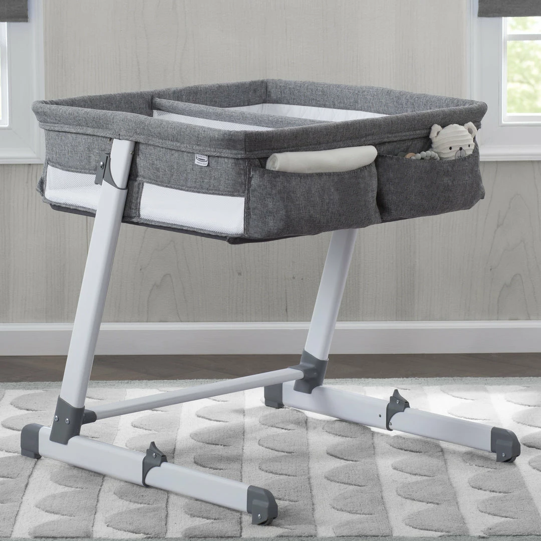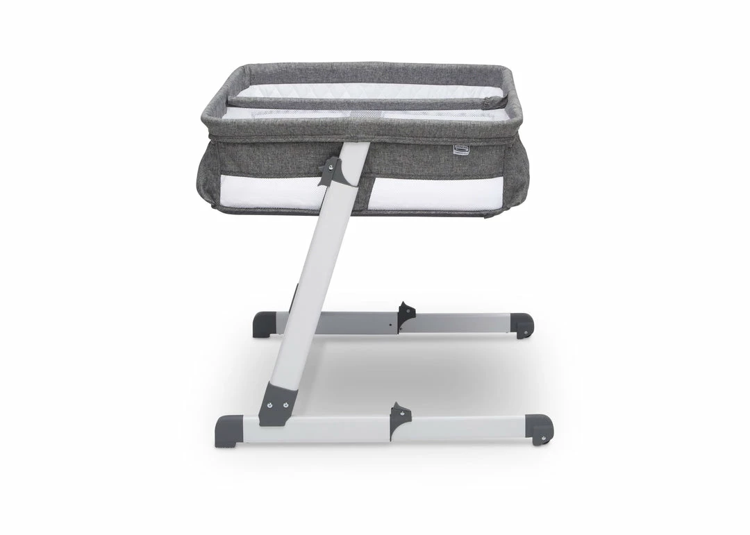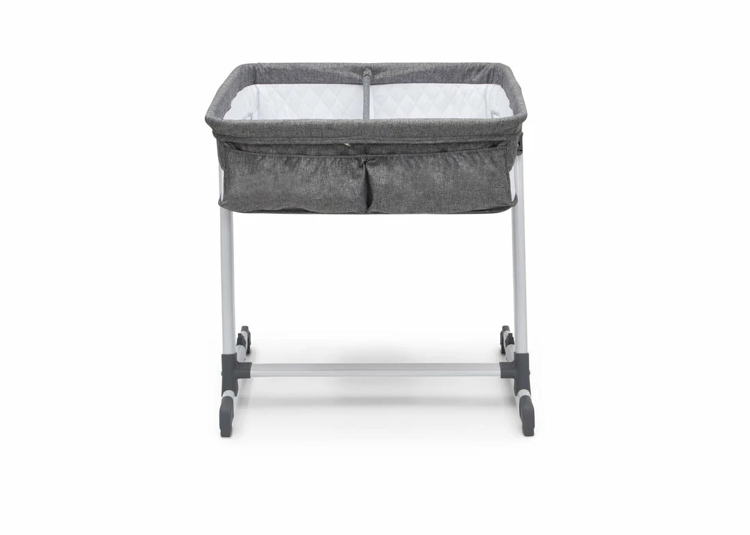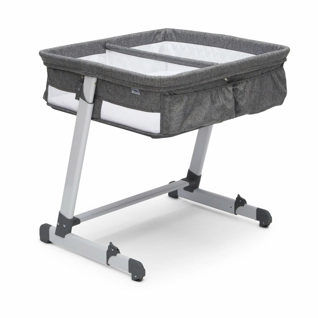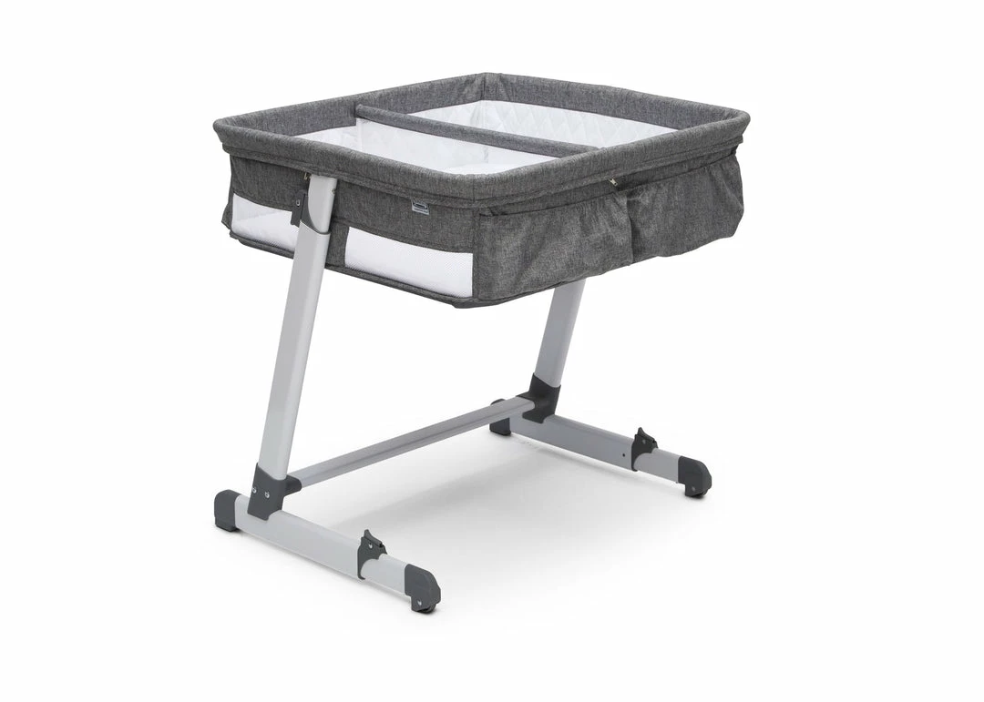 Keep your newborn twins close with the Simmons Kids By the Bed Twin City Sleeper Bassinet. The bassinet’s modern z-shaped frame is outfitted with wheels, so you can easily slide the base under your bed giving your babies a safe, separate sleep space that’s still close to you (and each other!). Perfect for all mothers (especially those who are breast feeding or recovering from C-sections), this bassinet’s sturdy, adjustable base with five height levels fits next to almost any bed, and keeps your baby at eye level, so you can easily soothe and tend to them during their first few months. Mesh sides provide a clear view and help with airflow. For your ease, storage pockets provide space for burp clothes, small toys or pacifiers. The twin bedside sleeper of your dreams, the Simmons Kids By the Bed Twin City Sleeper Bassinet allows you to feel close and connected to your little ones in the safest way possible. This bassinet is recommended for babies 0-5 months. Stop use at 5 months or once your infant begins to push up on their hands and knees, whichever comes first.