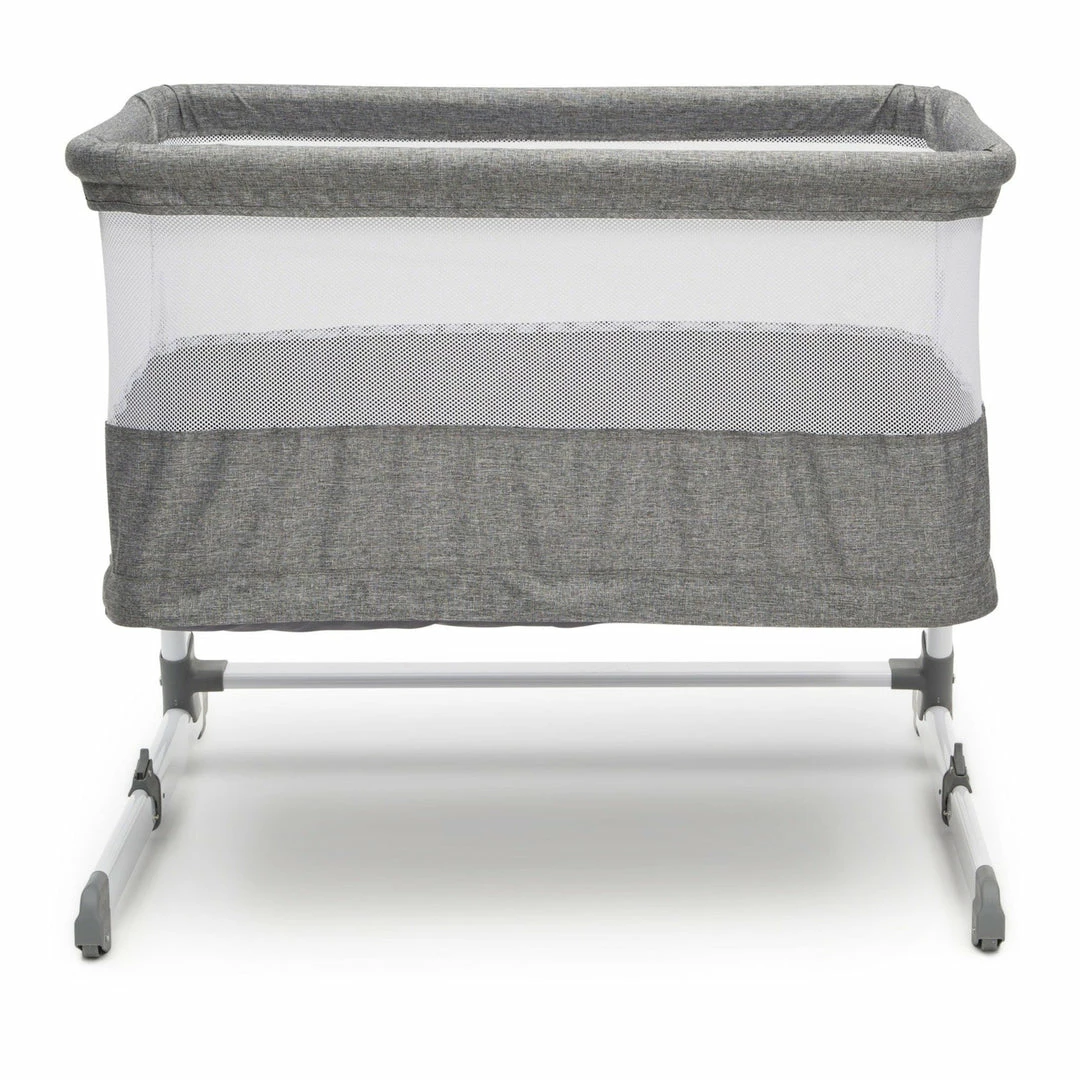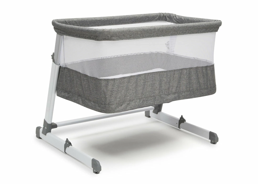 The Room2Grow Convertible Bassinet/Sleeper; For Babies up to 1 Year! from Simmons Kids® is there for your baby as they grow. Making it extremely easy and safe to room share with your little one from birth to 12 months, this newborn bassinet and infant sleeper combo features two stages that allow you to lower the unit as your baby matures. Use the bassinet mode for newborns (up to 15 lbs.) In the bassinet stage you can easily adjust the height so your baby is close by and within reach, which makes it easier than ever to soothe or feed your little one. For infants (up to 25 lbs.) use the sleeper mode. The sleeper mode allows you to lower the unit to the floor to ensure your growing baby has the safest sleep environment while still being near by. The included mattress pad offers a firm, comfortable surface to sleep on while mesh sides provide a clear view of Baby and help air circulate. A must-have for new parents, the Room2Grow Convertible Bassinet/Sleeper; For Babies up to 1 Year! helps make the first year with your baby stress-free by providing a safe room-sharing option for your family. The removable mattress cover is machine washable for easy cleanup.